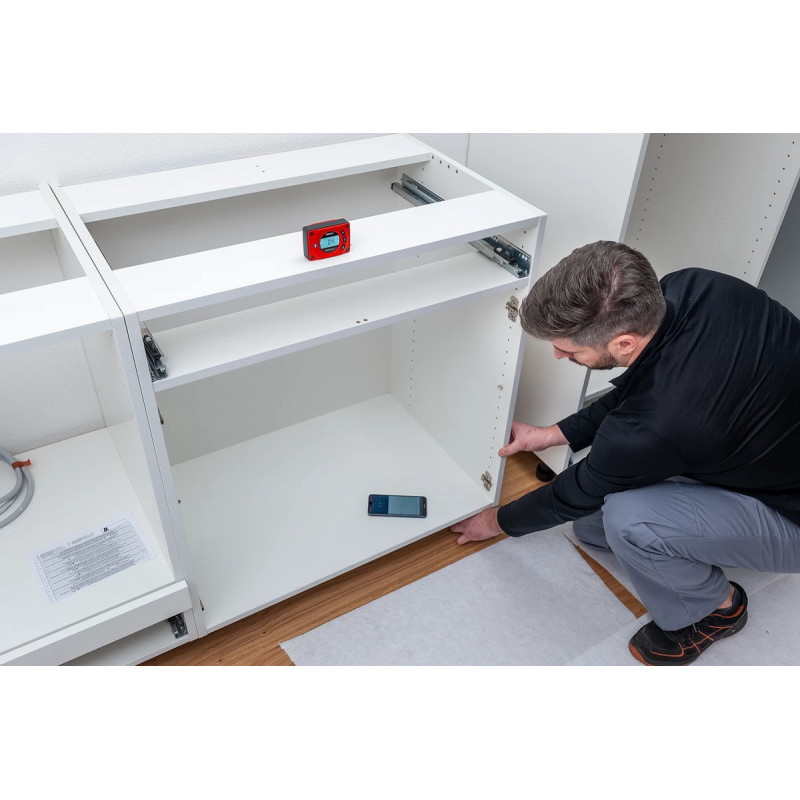 GO! Smart măsoară înclinațiile și unghiurile cu precizie maximă. Dimensiunea sa compactă și magneții integrați fac ca dispozitivul să fie ideal pentru reglarea unghiului pânzelor de ferăstrău. Dezvoltat pentru a îndeplini cele mai înalte standarde de precizie, GO! smart asigură unghiuri de tăiere măsurate cu precizie atunci când tăiați îmbinările mitrale. Valorile măsurate pot fi afișate în °, %, mm/m și in/ft. Funcția „Hold” vă permite să „înghețați” valorile măsurate curente pe afișaj, în timp ce funcția „Inc” vă permite să transferați cu ușurință unghiurile.