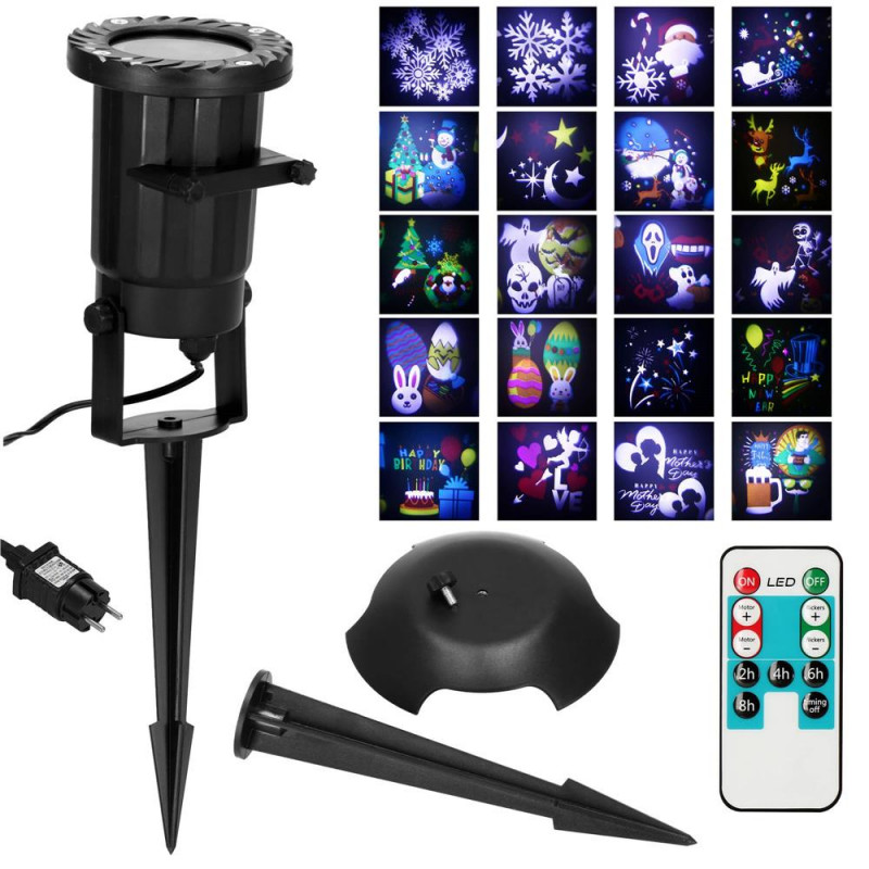 Paste Gata cu decoratiunile plictisitoare si cliseice, care sunt intotdeauna o bataie de cap dupa petrecere, deoarece sunt de obicei de unica folosinta. Surprindeti pe toata lumea si iesiti din cutie! Cu ajutorul proiectorului puteti crea un efect vizual pe langa care nimeni nu va trece fara a fi nevoit sa va ocupati de o incalceala de cabluri si sa infasurati lumini pe fatada casei, pe acoperis sau in interior. Tot ce trebuie sa faceti este sa instalati proiectorul sau sa il fixati la sol cu ajutorul trepiedului inclus, sa asigurati o sursa de alimentare si... asta este tot!Controlati dispozitivul cu ajutorul telecomenzii si intrati in atmosfera de sarbatoare fara a cheltui timp si nervi pentru a crea iluminari in jurul casei. Este o joaca de copii!Imaginati-va privirea copilului dvs. atunci cand vede, de exemplu, un fulg de zapada, un Mos Craciun sau un iepuras de Paste pe tavanul camerei sale seara... Proiectoarele sunt o modalitate fiabila de a crea in camerele copiilor o atmosfera favorabila unui somn de noapte fara stres, care va deveni cu siguranta o amintire placuta in mintea copiilor nostri pentru multi ani de acum incolo. Nu uitati sa pastrati dispozitivul in sine, departe de mainile copiilor.Decoratiunile cu LED-uri se caracterizeaza printr-o siguranta sporita, deoarece LED-urile sunt alimentate de o tensiune joasa obtinuta de la un transformator (unitate de alimentare), care reduce tensiunea de retea la cativa volti (aceasta cifra este marcata LOW VOLTAGE pe ambalaj).Iluminatul de joasa tensiune este conform cu standardele europene si poarta marcajul CE. La randul sau, unitatea de alimentare poarta marca de calitate GS, ca o confirmare a faptului ca indeplineste standarde de siguranta ridicate. PARAMETRI: