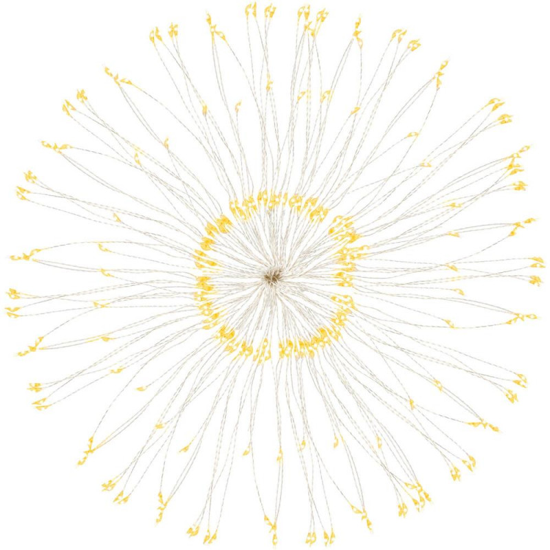 PARAMETRII: Stea exploziva contine 100 de LED-uri Culoare galben (alb cald)Programator cu 8 functii: combinatie, val, secventa, luminozitate, blit/sclipire lenta, estompare lenta, blit/sclipire, lumina constanta Ramuri metalice, care reflecta frumos lumina si sporesc efectul.24 de crengute Diametrul sferei atunci cand este desfasurata 40 cm Crengute de aproximativ 20 cm lungime Pe fiecare crenguta 5 LED-uri Lungime cablu aprox. 3 m Strand lumini 100 micro LED-uri Culori vii, clare LED-uri de economisire a energiei Alimentat cu energie electrica1 LED ars nu opreste setul!Lumini pe fire de cupru argintii durabile Partea superioara are un suport pentru agatat Sursa de alimentare 230 VCertificat CEGrad de protectie IP44 Steaua exploziva cu iluminare micro-LED arata minunat atarnata in camera de zi, deasupra insulei din bucatarie sau langa ferestre, unde lumina sa blanda lumineaza frumos spatiul imediat dupa lasarea intunericului. In plus, dispune de un set de programare a iluminatului cu 8 functii, astfel incat puteti decide singur ce caracter doriti sa aiba in fiecare zi.Decoratiunile cu LED-uri sunt mai sigure decat luminile traditionale, deoarece diodele sunt alimentate de o tensiune joasa sigura obtinuta de la un transformator (adica o sursa de alimentare care reduce tensiunea de retea la cativa volti), marcata LOW VOLTAGE pe ambalaj. Acest lucru asigura faptul ca diodele nu se incalzesc si pot fi atinse in siguranta. De asemenea, nu exista niciun risc de electrocutare in cazul in care sirul de lumini este deteriorat. Iluminatul de joasa tensiune respecta standardele europene si fiecare produs este marcat CE. Printre altele, sursa de alimentare poarta marca de calitate GS ca o confirmare a faptului ca indeplineste standarde de siguranta ridicate.In plus, este echipat cu un programator cu 8 functii care va permite sa selectati modul de iluminare ideal pentru dumneavoastra