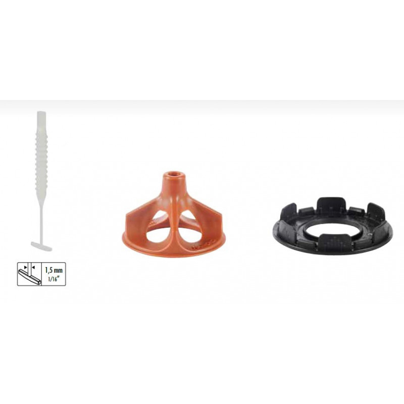 - Acest sistem SOS patentat poate fi utilizat pentru nivelarea plăcilor așezate cu rosturi de la 1,5 mm. Sunt potrivite pentru placi cu o grosime de la 3 la 20 mm!