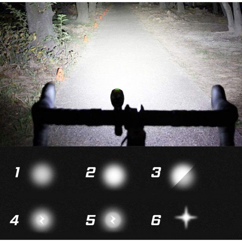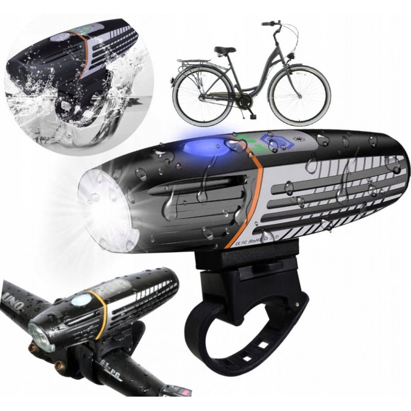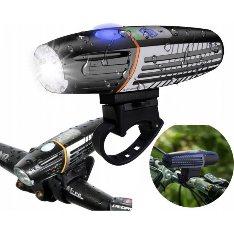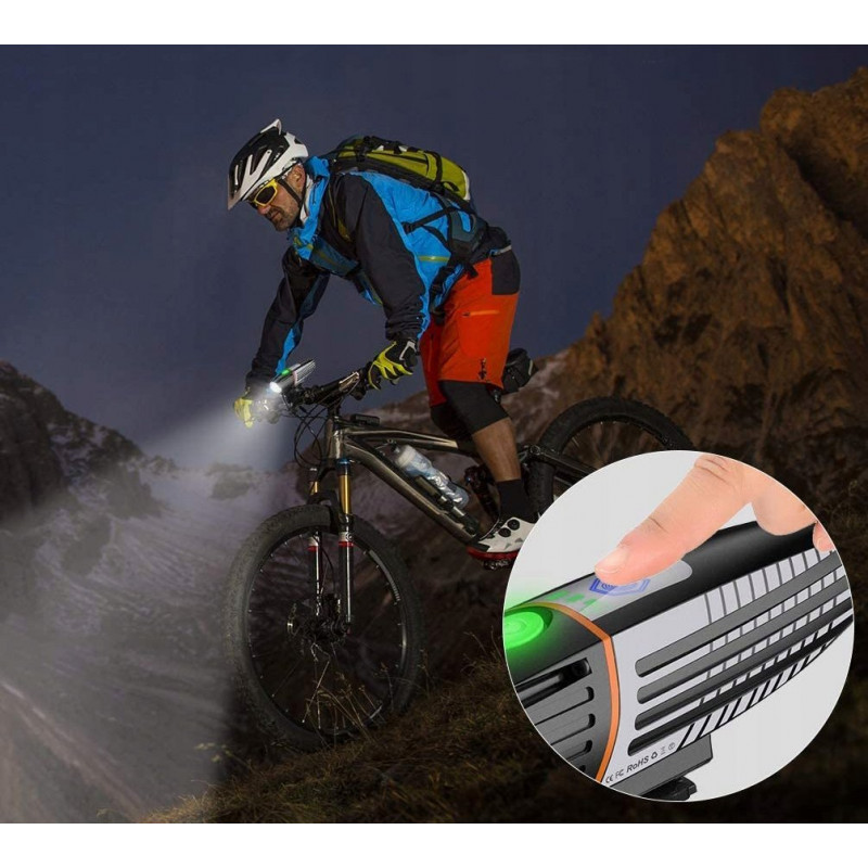 Lumina LED pentru bicicleta, impermeabila, de inalta calitate, cu indicator al nivelului bateriei. Dispozitivul imbunatateste siguranta biciclistului in timpul mersului.