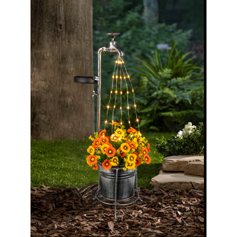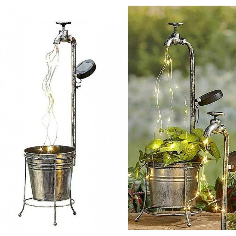 Scurta descriere: Lampa solara decorativa tip robinet cu ghiveci aduce un element original si plin de farmec in gradina ta. Lumina calda creeaza un efect vizual placut, ideal pentru un ambient relaxant in serile de vara. Functioneaza pe baza de energie solara, fara cabluri sau consum suplimentar, fiind usor de amplasat oriunde exista lumina naturala.