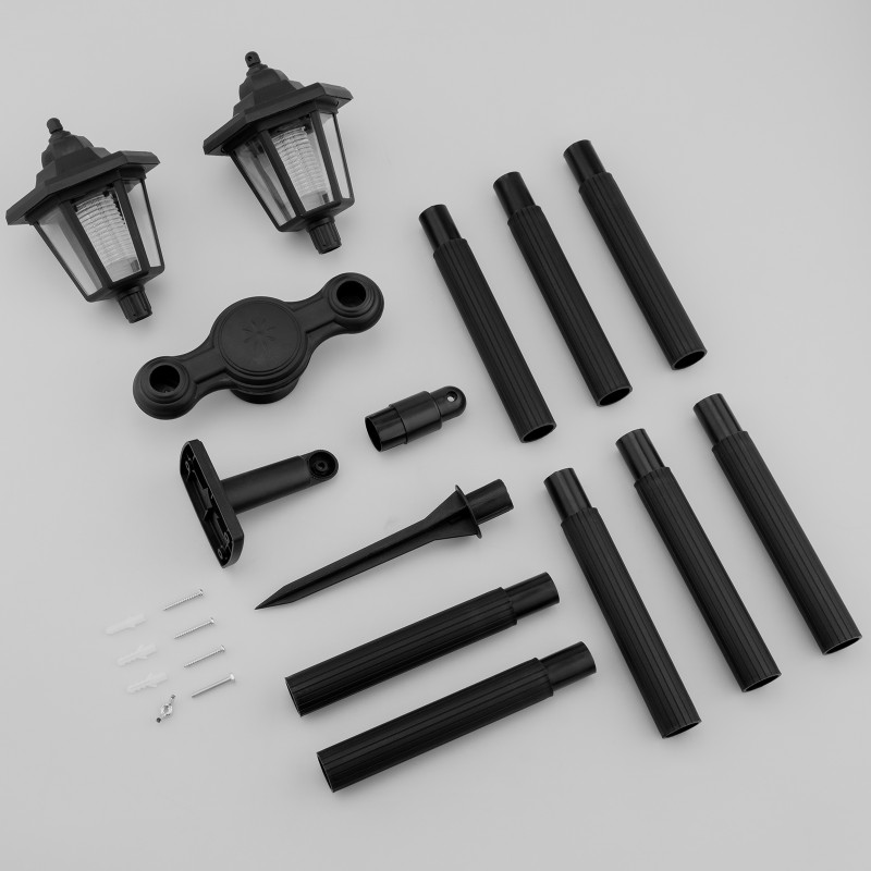 Scurta descriere: Lampa solara 3 in 1 este solutia practica si eleganta pentru iluminarea gradinii. Poate fi folosita ca stalp de iluminat sau montata pe perete, oferind flexibilitate maxima in functie de spatiul disponibil. Designul clasic se potriveste in orice tip de amenajare, iar alimentarea solara elimina complet necesitatea cablurilor sau a consumului de energie electrica.