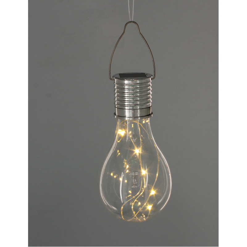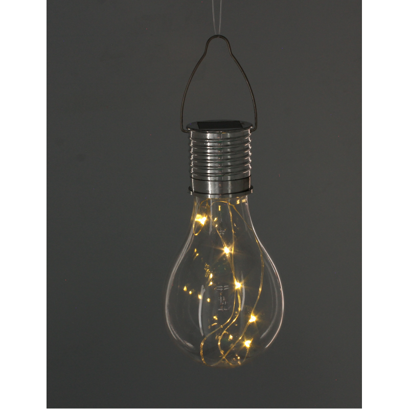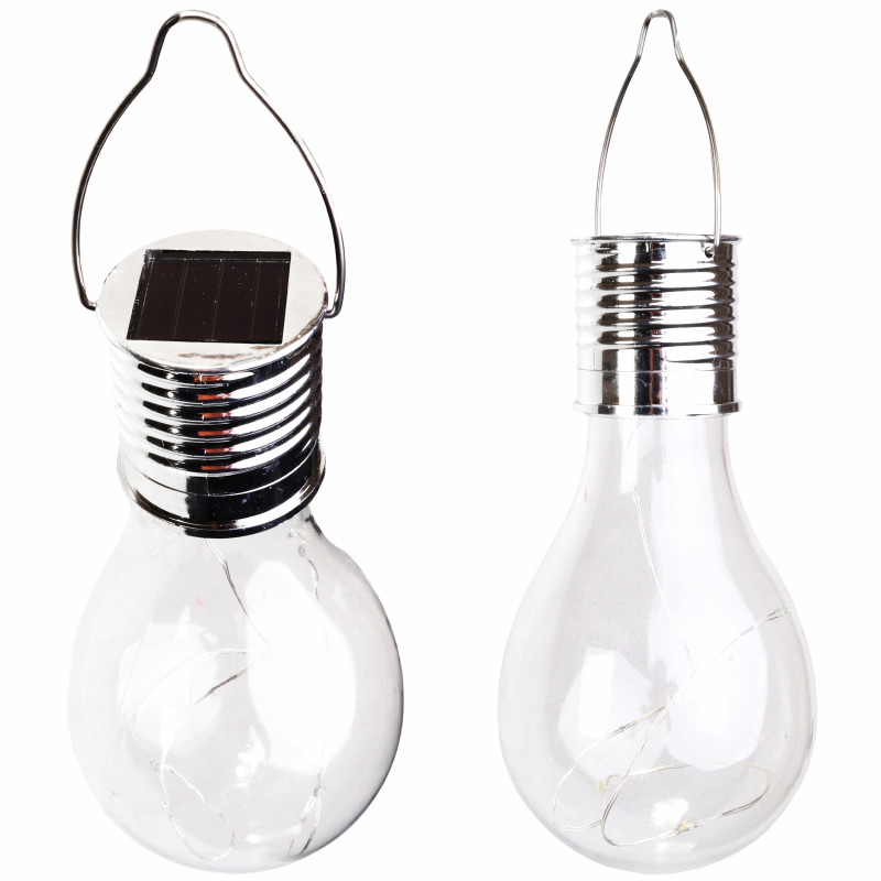 Rezistent la conditiile meteorologice Becul solar, care poate fi atarnat, este un element decorativ deosebit. Lampa de inalta calitate straluceste cu o lumina alba stralucitoare datorita LED-ului. Datorita sistemului solar, lampa expusa la lumina soarelui se incarca singura! Porniti-o cu un intrerupator si bucurati-va de efectul uimitor.