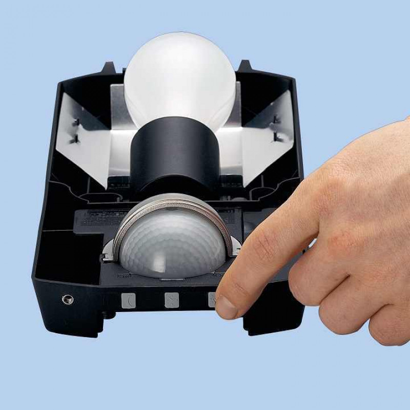 Senzorul acţionează la orice detecţie de temperatură şi asigură aprinderea sau stingerea treptată a luminii. Sistemul Watt-O-Matic integrat de aprindere treptată, protejează ochii şi măreşte durata de viaţă a becurilor deoarece la aprindere puterea creşte treptat. Aceeaşi evoluţie treptată este asigurată de sistemul electronic şi în faza de stingere. Sistemul Watt-O-matic confortabil şi economic, poate regla o iluminare de fond în limitele 0 – 25% din puterea de iluminare maximă iar la pătrunderea în domeniul de detecţie, iluminarea creşte la putere maximă. Timpul de iluminare poate fi limitat manual cu întrerupătorul de reţea, pentru funcţionarea permanentă de până la patru ore. Se racordeaza la reţea 230 – 240 V, 50 Hz şi utilizează două becuri normale E27 (max.100W).