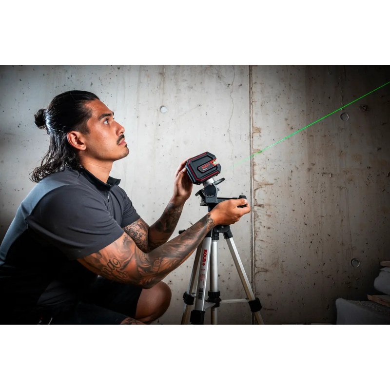 X2 GREEN Professional este un laser cu linie verde ușor de utilizat, conceput special pentru alinierea precisă orizontală și verticală a obiectelor în construcțiile interioare. Laserul proiectează atât o linie orizontală, cât și una verticală, care pot fi pornite sau oprite individual cu un singur buton. X2 GREEN are o fereastră mare cu laser, care permite o panoramă largă de până la 170°, oferind o mare flexibilitate pentru lucrul pe podele, tavane și pereți. Cu o precizie de măsurare de ±0,2 mm/m, asigură rezultate precise de fiecare dată.