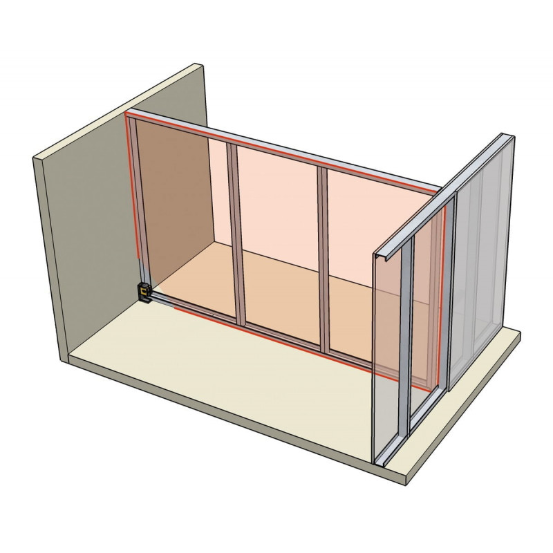 Marcajele pe podea, perete şi tavan sunt desenate concomitent.