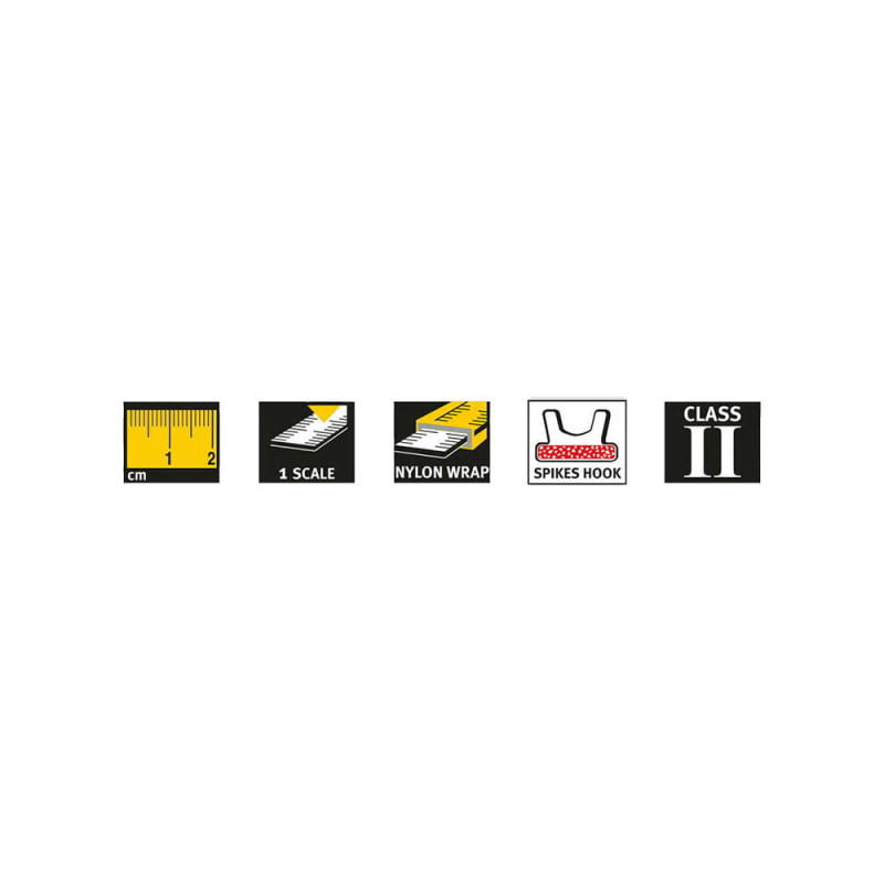 STABILA UNIVERSAL SPIKES HOOK: gamă de opțiuni de montare datorită cârligului SPIKES pliabil cu ochi integrat și inel mare din plastic rezistent la spargere, cu crestătură, care asigură o prindere sigură atunci când trageți banda.