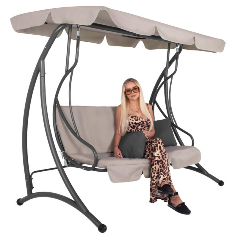 Scurta descriere Leaganul de gradina cu structura metalica solida si copertina reglabila este ideal pentru momentele de relaxare in aer liber. Conceput pentru 3 persoane, dispune de saltea si perne confortabile, material textil impermeabil si elemente antiderapante pentru stabilitate. Designul elegant si constructia robusta il fac potrivit pentru gradina, terasa sau curte.