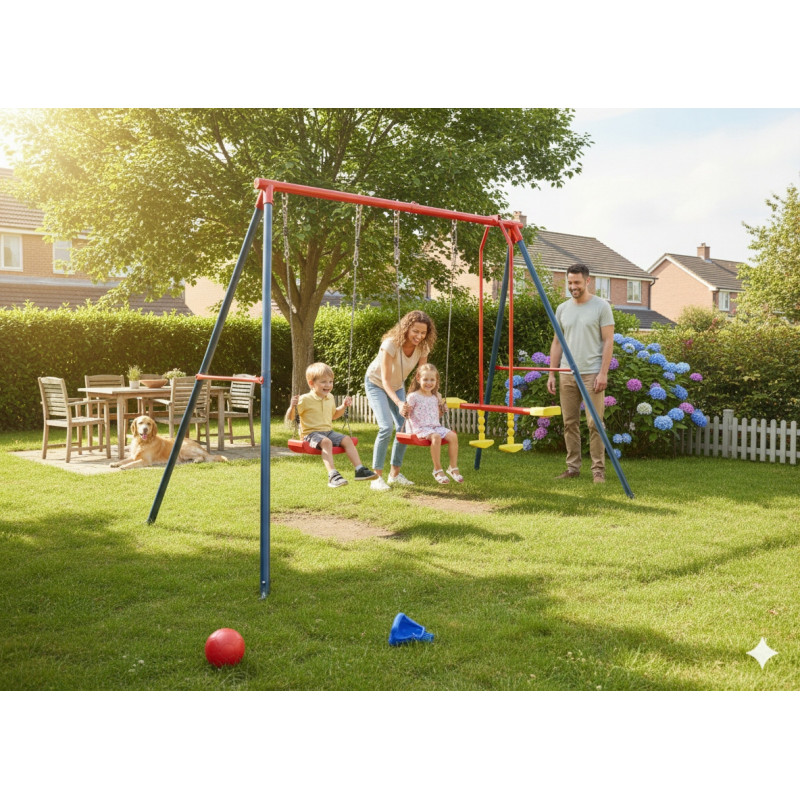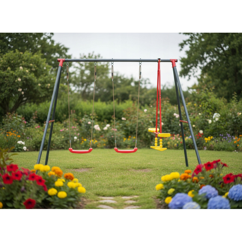 Scurta descriere Leaganul de gradina este alegerea ideala pentru distractie si relaxare in aer liber. Include doua scaune clasice si un leagan de echilibru, oferind mai multe moduri de joaca pentru copii. Structura metalica solida si culorile vii il transforma intr-un element atractiv si sigur pentru orice gradina sau curte.