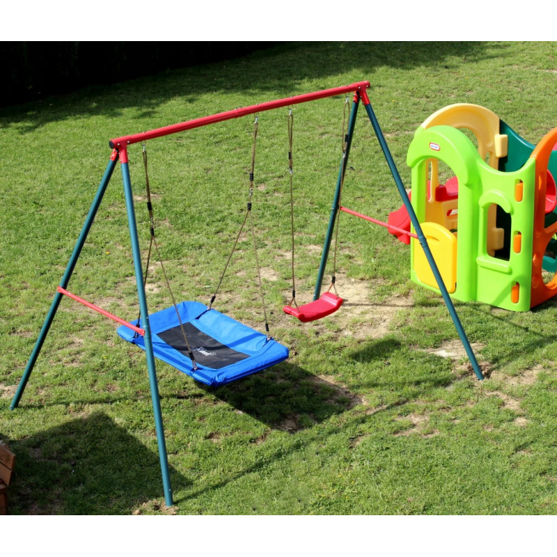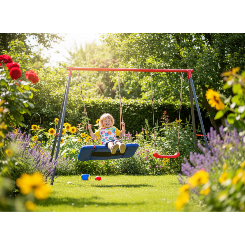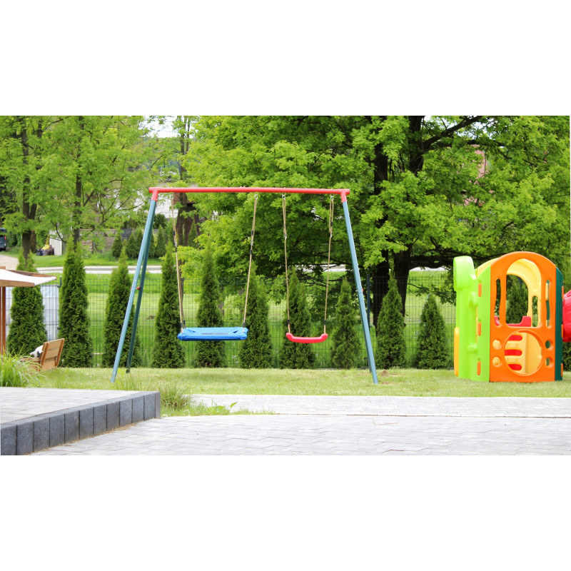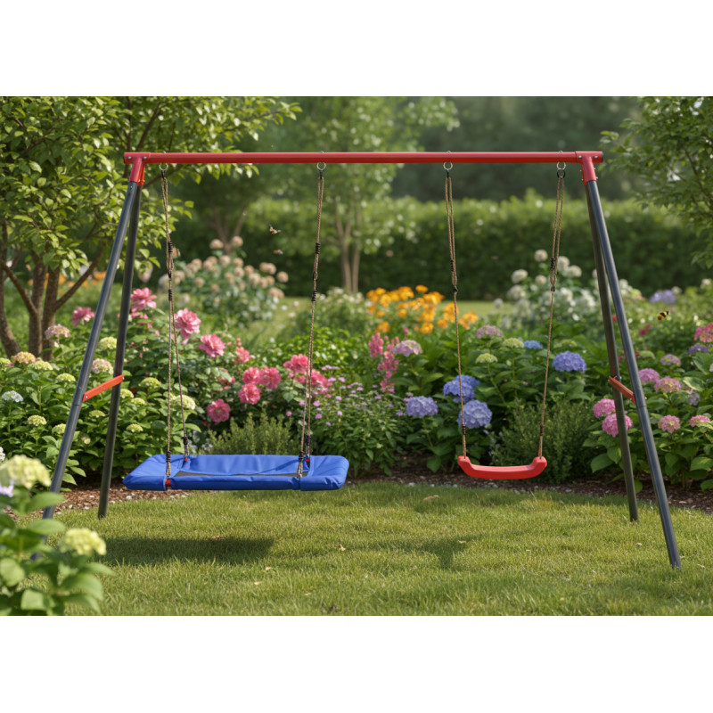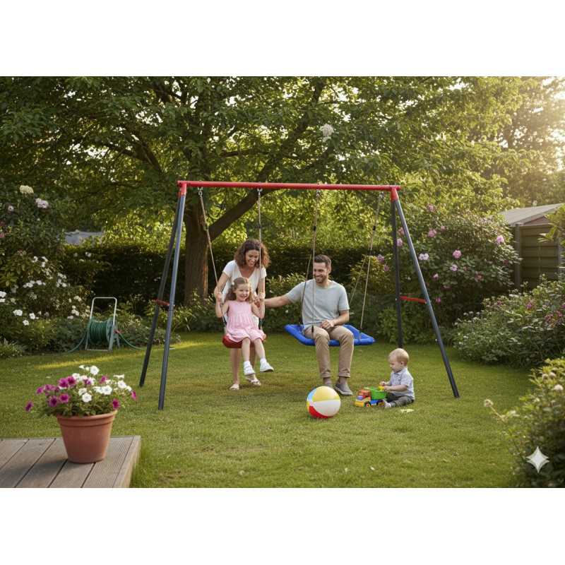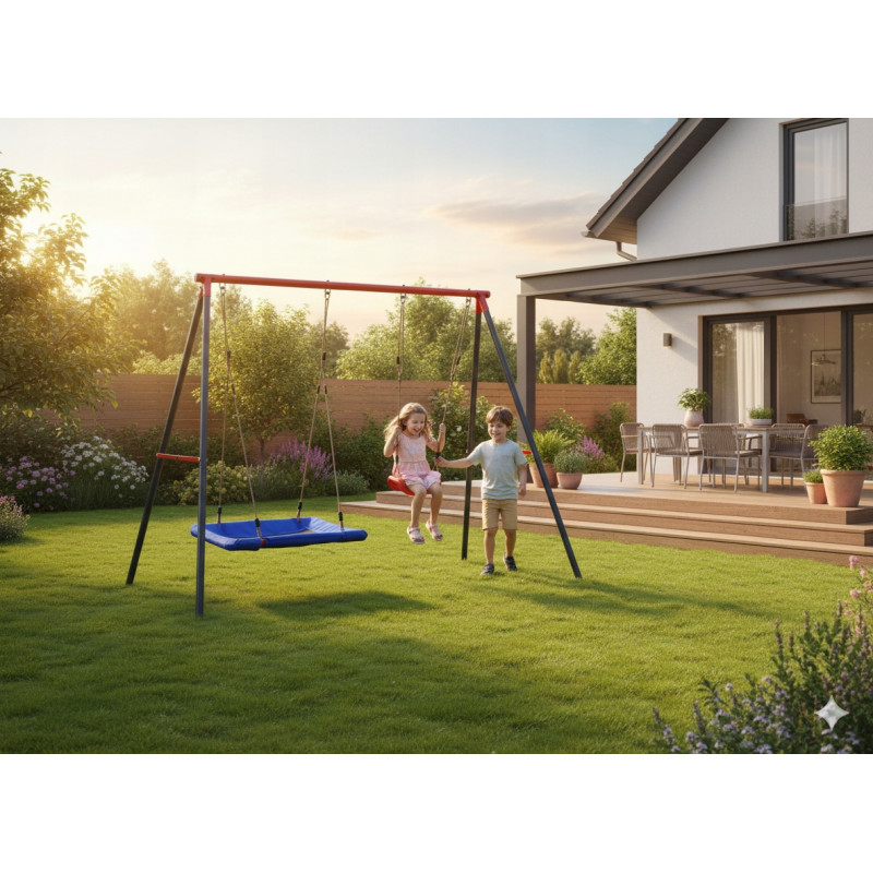 Scurta descriere Leaganul de gradina dublu este alegerea perfecta pentru distractie si relaxare in aer liber. Include un scaun clasic si un leagan tip cuib barza, oferind doua moduri diferite de utilizare. Structura metalica rezistenta si designul sigur il fac ideal pentru copii, dar si pentru momente placute petrecute in familie.