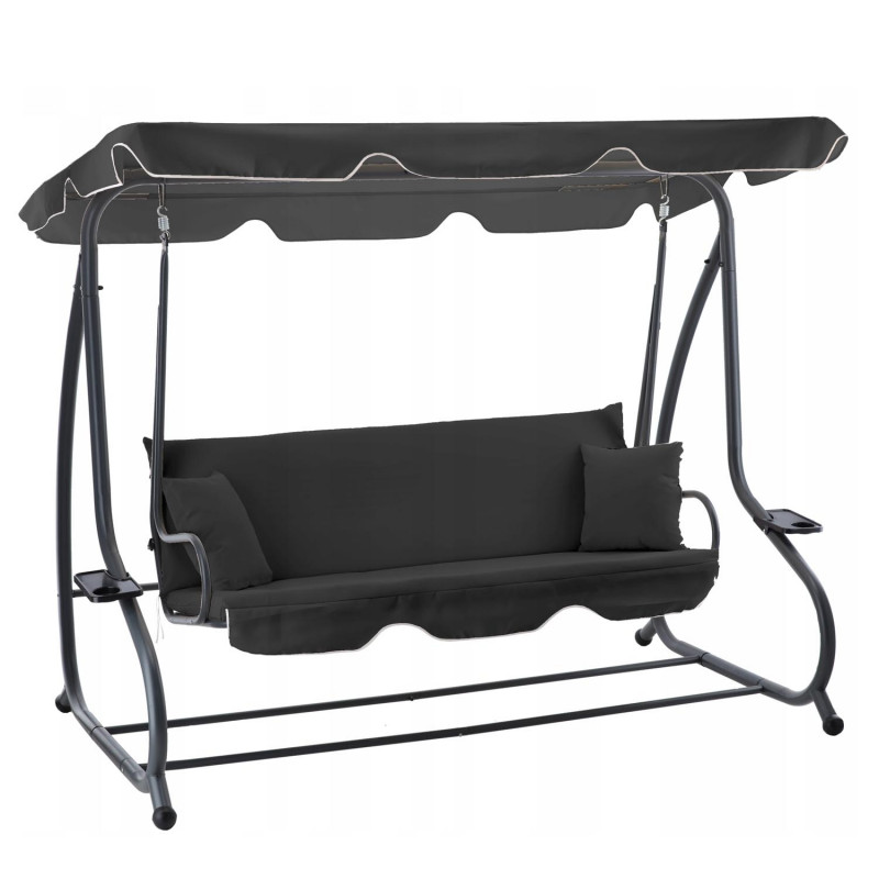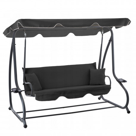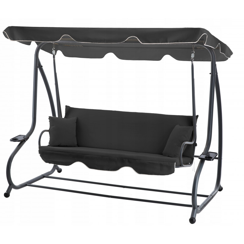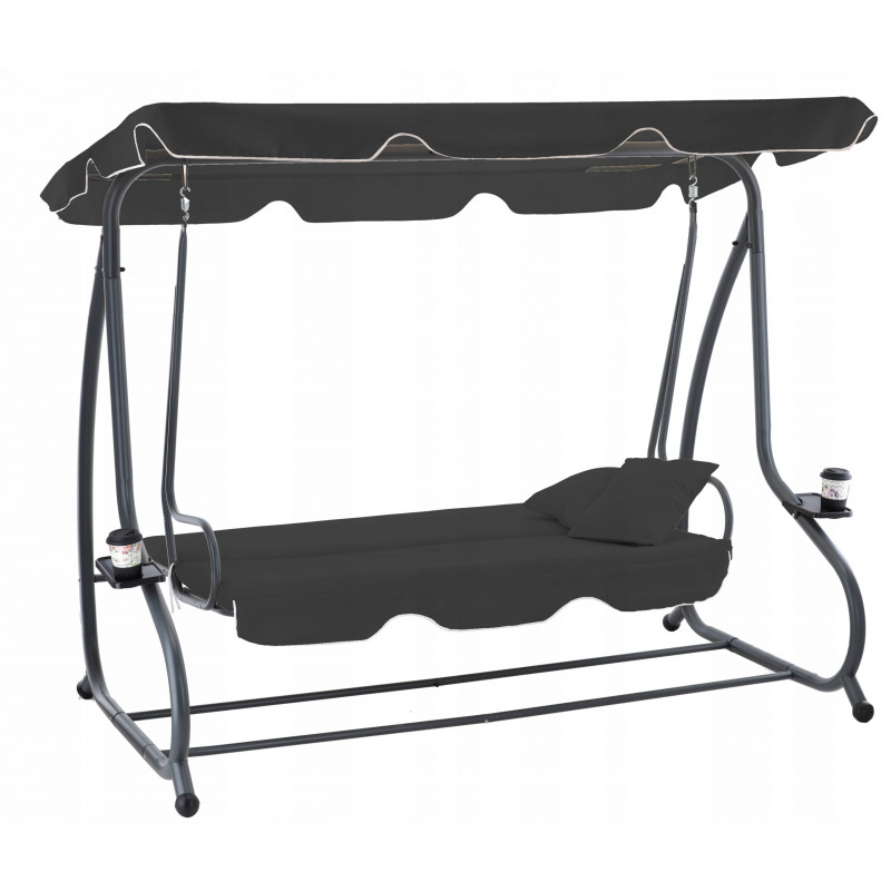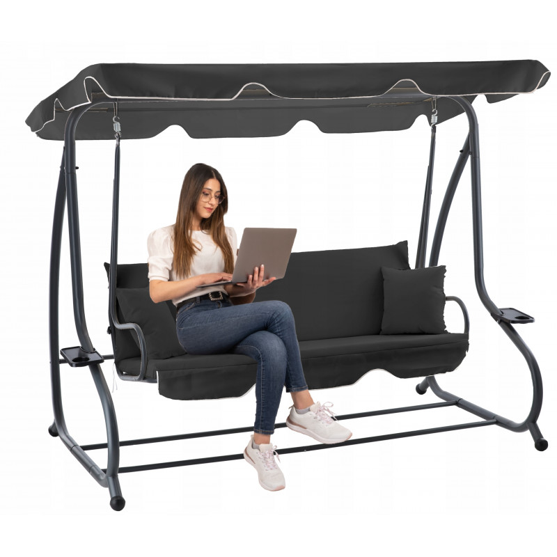 Design modern si confort maxim Acest leagan de gradina pentru 4 persoane este solutia ideala pentru relaxare in aer liber. Cu baldachin reglabil , functie de pat si suporturi pentru pahare , ofera confort si eleganta in orice spatiu exterior. Sezutul lat si structura solida din otel garanteaza stabilitate si siguranta.