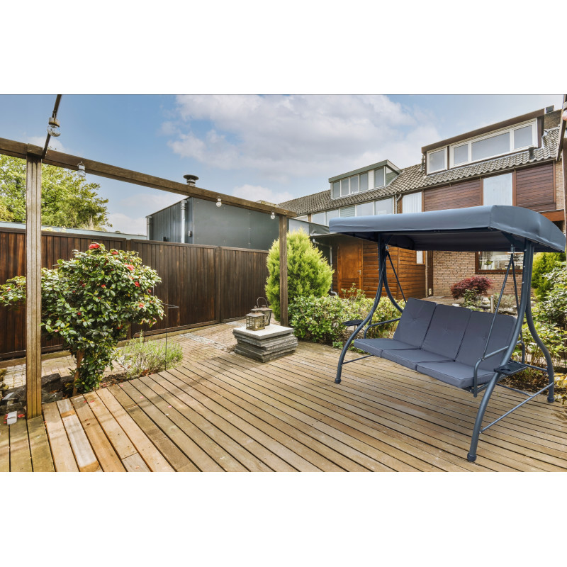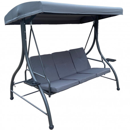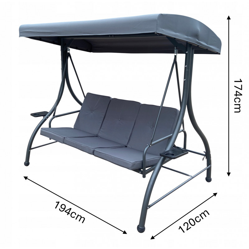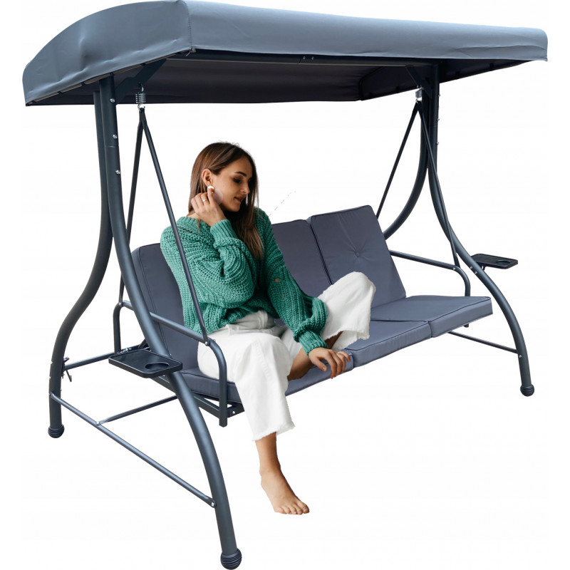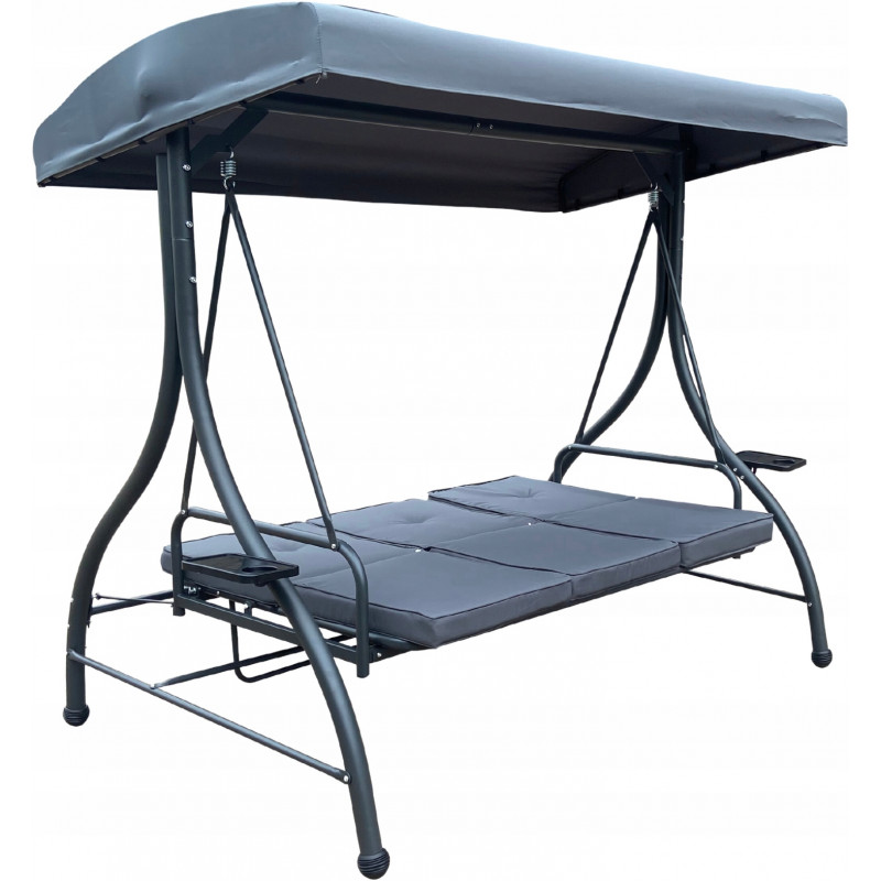 Relaxare confortabila in gradina ta Acest leagan pentru 3 persoane este perfect pentru gradina, terasa sau curte, oferind confort maxim datorita functiei de pat , baldachinului reglabil si suporturilor pentru pahare . Realizat din materiale rezistente la intemperii, garanteaza durabilitate si stabilitate pe termen lung.