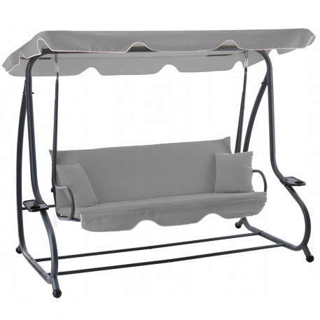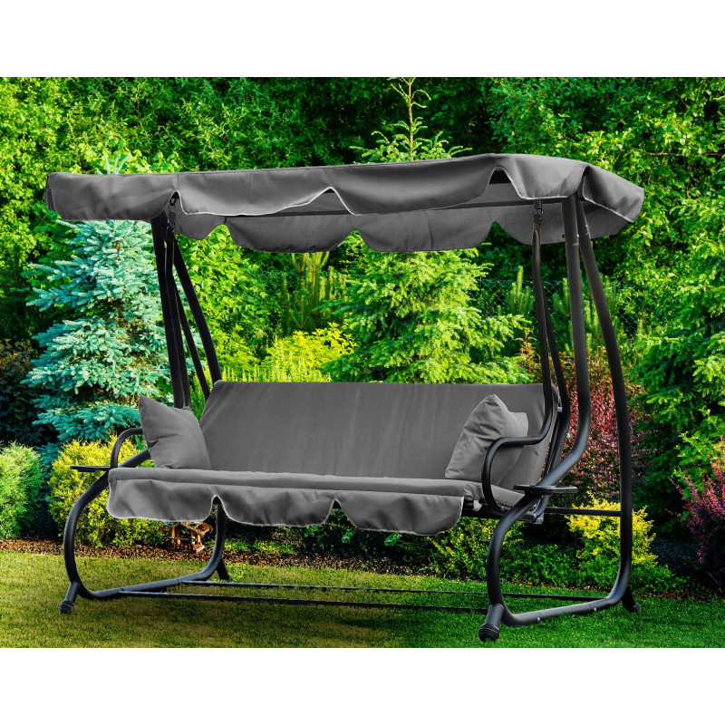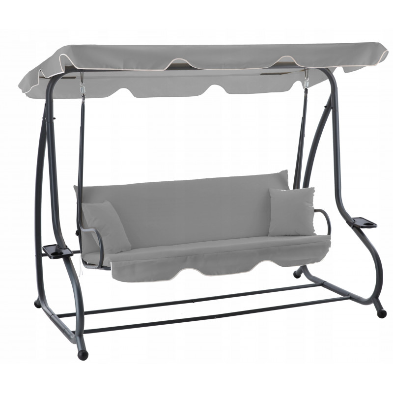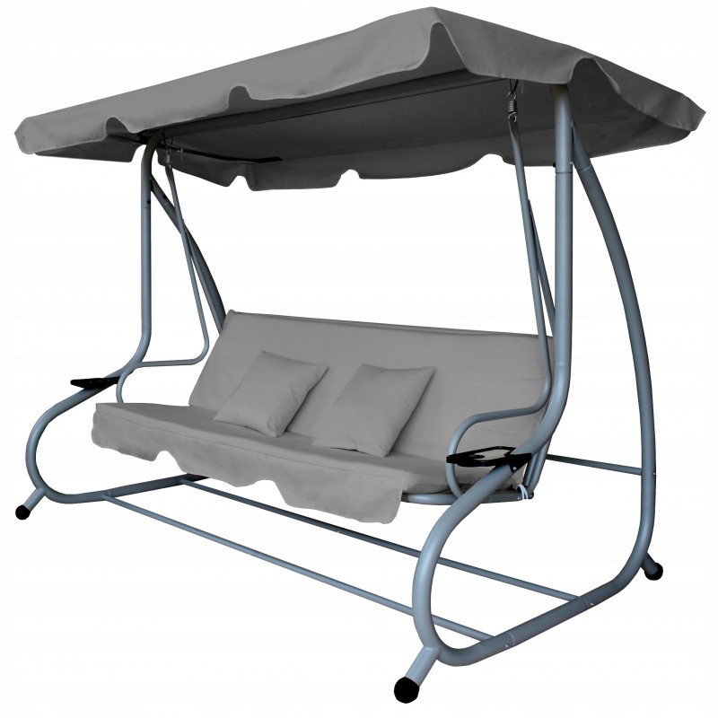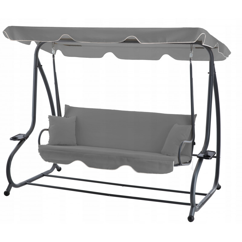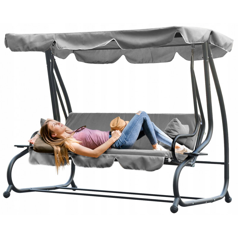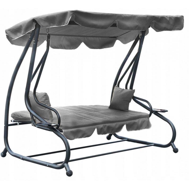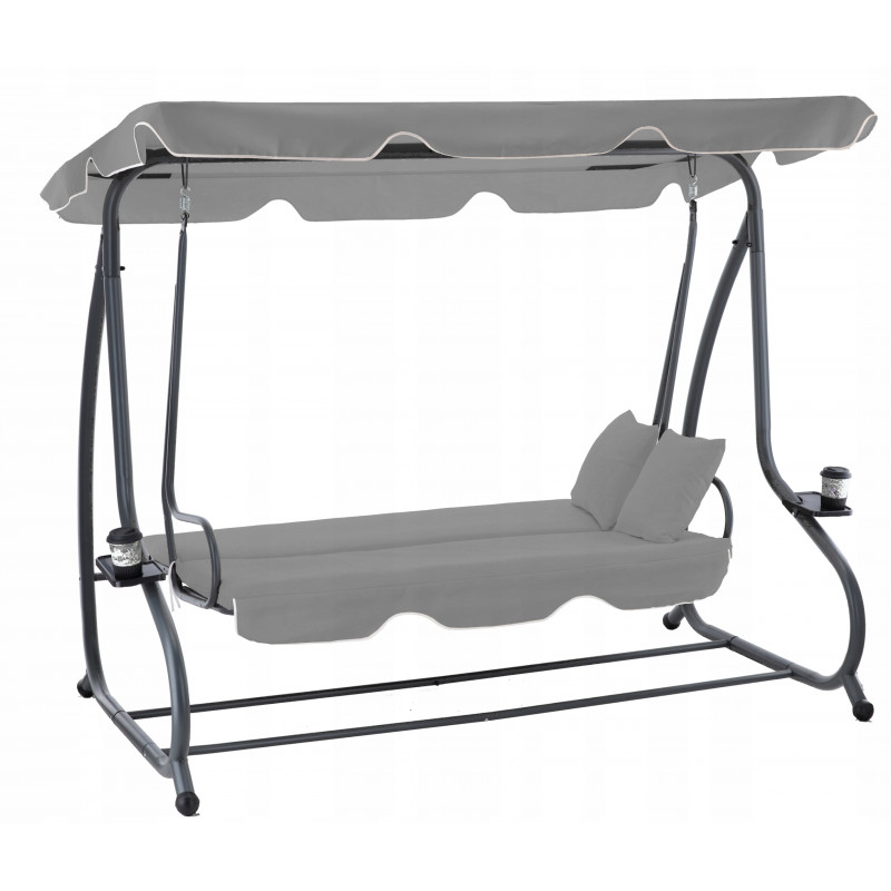 Relaxare si confort in aer liber Acest leagan pentru 4 persoane este perfect pentru gradina, terasa sau curte, oferind confort maxim datorita functiei de pat , baldachinului reglabil si suporturilor pentru pahare . Materialele rezistente la intemperii si structura robusta din otel asigura durabilitate si siguranta.