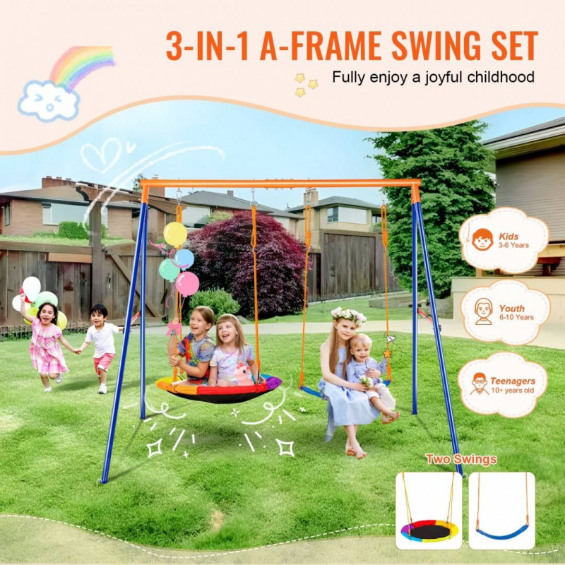 set de leagan cu cadru A poate suporta pana la 200 kilograme, avand o structura
