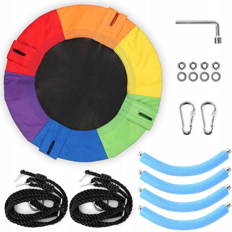 Corzile sunt decorate cu fanioane colorate PARAMETRII: materiał: UV 600 D Oxford, PE, otel.capacitate de incarcare de pana la 150 kgdiametru 120cmcadru din otel protejat de o spuma de aprox. 1cm grosimesuspensie reglabila: de la aprox. 100cm la aprox. 170cmconfectionat din nailon cu o grosime de aprox. 10mmpentru autoasamblare (accesorii de asamblare incluse)2 carlige cu clichet pentru o suspendare usoara a leaganuluicutie de carton: 88x43x7cm Hamacul nu trebuie lasat expus la conditii meteorologice prelungite : soare,ploaie,zapada,inghet. Acest lucru poate duce la deteriorarea materialului si la pericolul de rupere in timpul utilizarii.