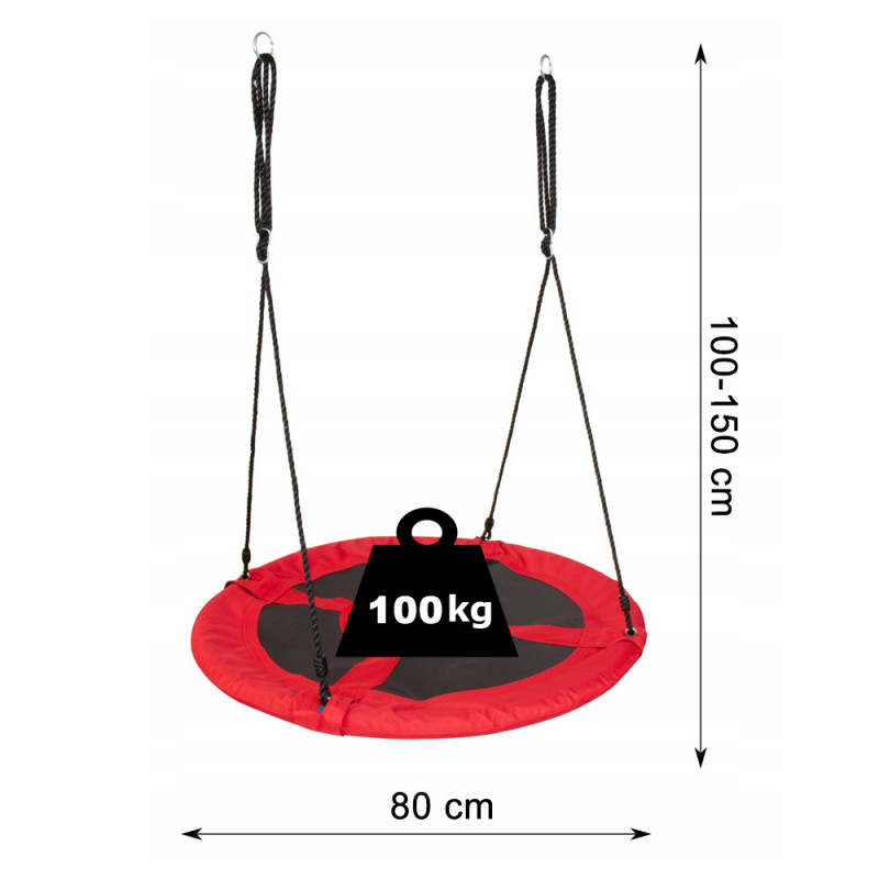 Caracteristicile produsului: - material scaun de inalta calitate - rezistent la conditiile meteorologice- sarcina maxima de pana la 100 kg- diametru sezut 80 cm- cadru durabil din otel asigurat cu spuma de aproximativ 1 cm- inaltime reglabila suspensie: de la aprox. 100 cm este aprox. 150 cm- franghii din nailon, aprox. 10 mm grosime- kit pentru auto-asamblare (accesorii de asamblare incluse)