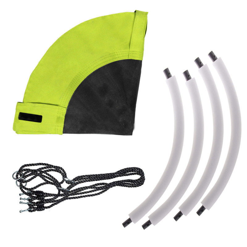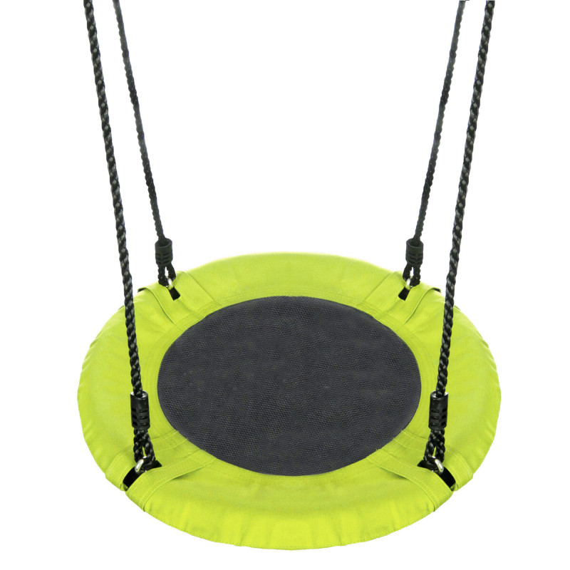 Leagan tip cuib, din panza rezistenta, dotat cu doua franghii ajustabile si inele sudate, de prindere in 4 locuri, pentru o stabilitate si siguranta sporita.