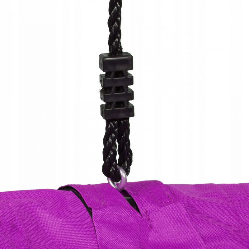 Leagan tip cuib, din panza rezistenta, dotat cu doua franghii ajustabile si inele sudate, de prindere in 4 locuri, pentru o stabilitate si siguranta sporita.