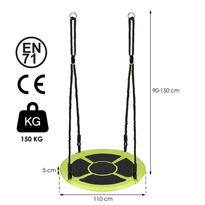 Lungimea cablurilor: 80-145 cm Spuma are 1 cm grosime Cadru metalic gros cu diametrul de 25 mm Snururi cu un diametru de aproximativ 11 mm Diametrul total al cadrului 45 mm