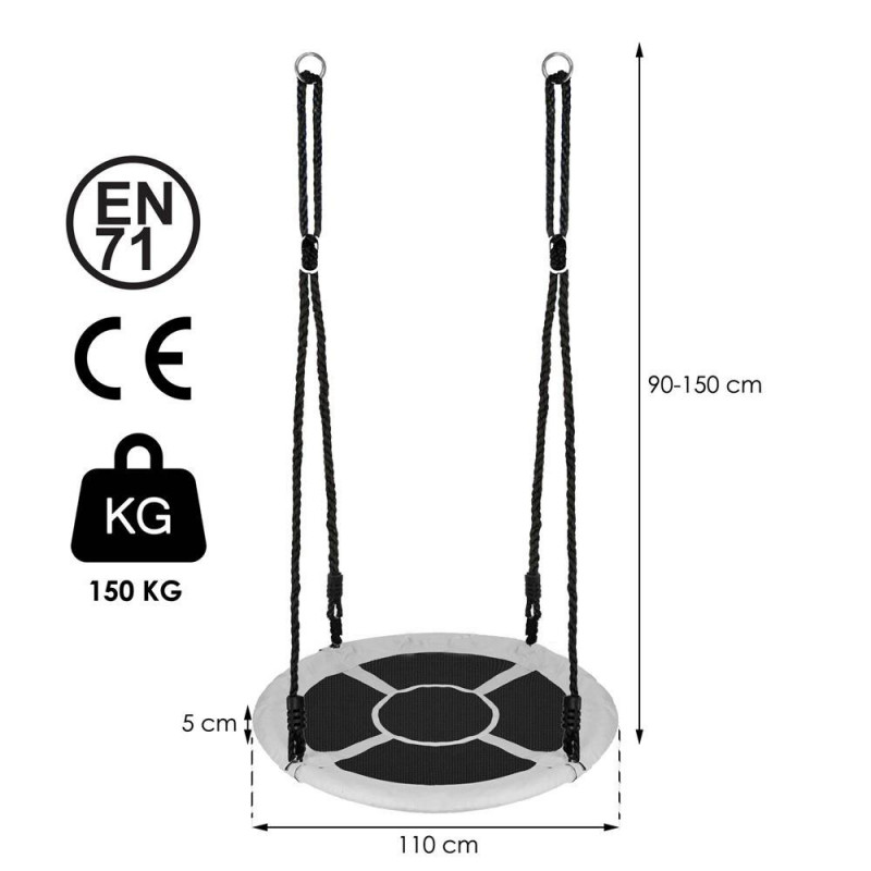 Lungimea cablurilor: 80-145 cm Spuma are 1 cm grosime Cadru metalic gros cu diametrul de 25 mm Snururi cu un diametru de aproximativ 11 mm Diametrul total al cadrului 45 mm