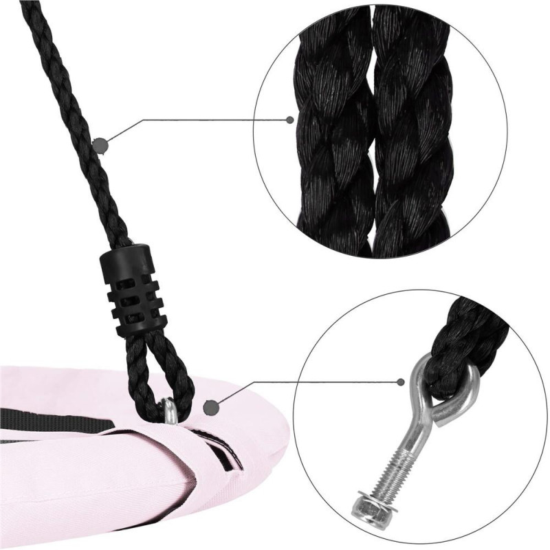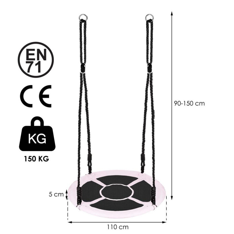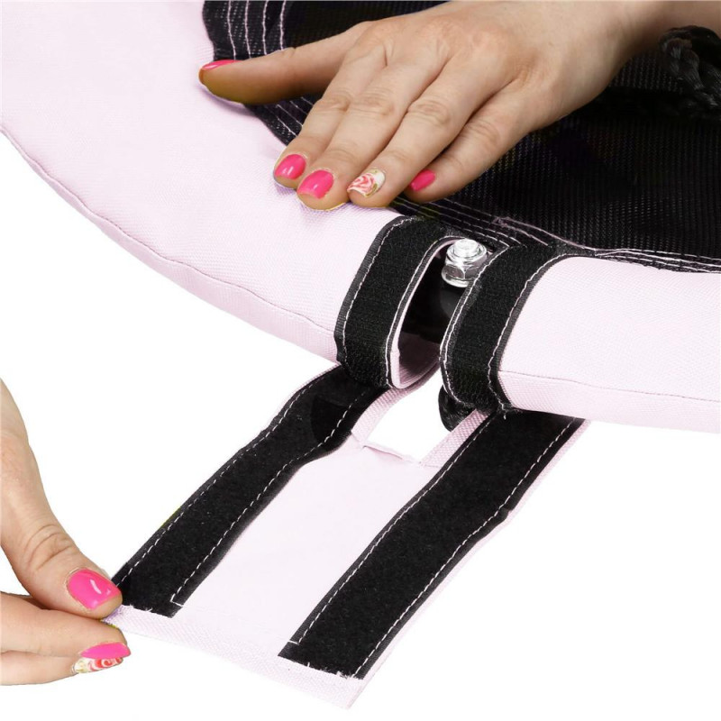 Lungimea cablurilor: 80-145 cm Spuma are 1 cm grosime Cadru metalic gros cu diametrul de 25 mm Snururi cu un diametru de aproximativ 11 mm Diametrul total al cadrului 45 mm