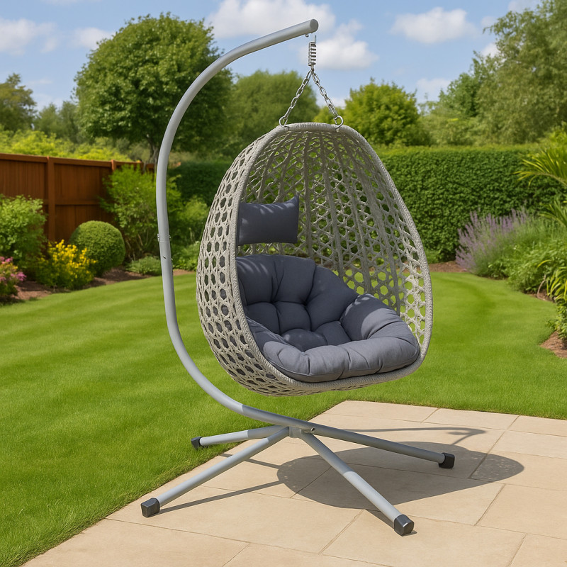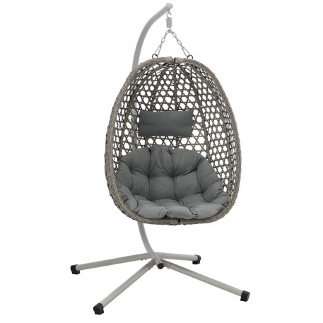 Scurta descriere Fotoliul suspendat pliabil este alegerea ideala pentru relaxare in aer liber sau in interior. Construit pe un cadru metalic stabil, cu cos din ratan sintetic si perna confortabila inclusa, acest fotoliu ofera echilibrul perfect intre estetica si functionalitate. Designul pliabil permite o depozitare usoara, fiind perfect atat pentru acasa, cat si pentru transport.