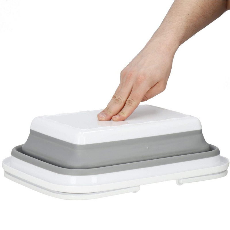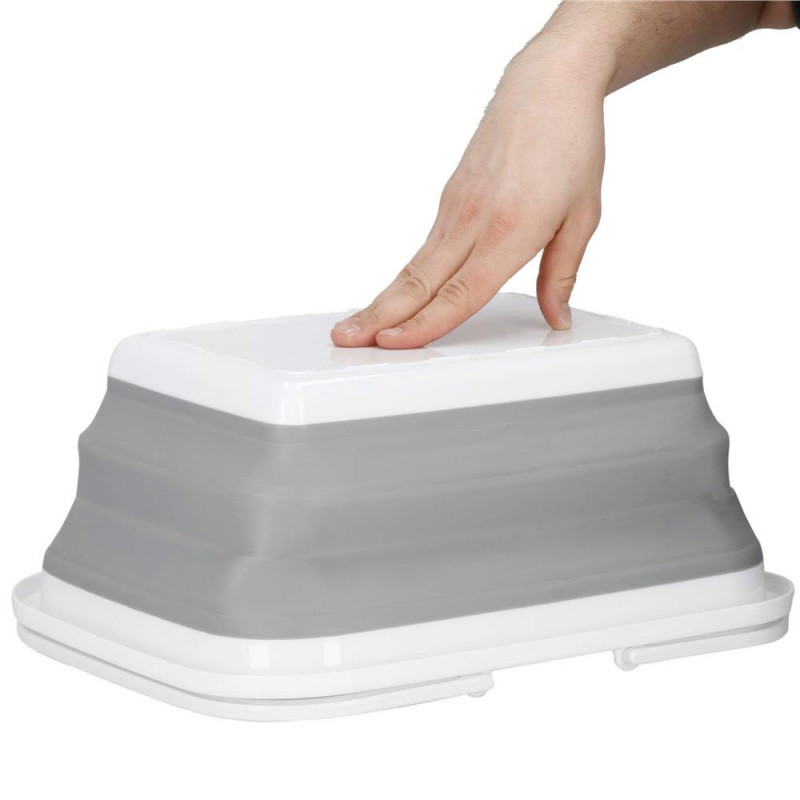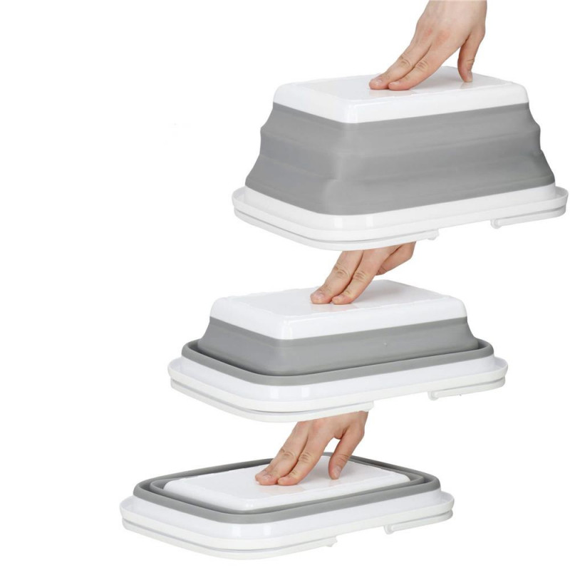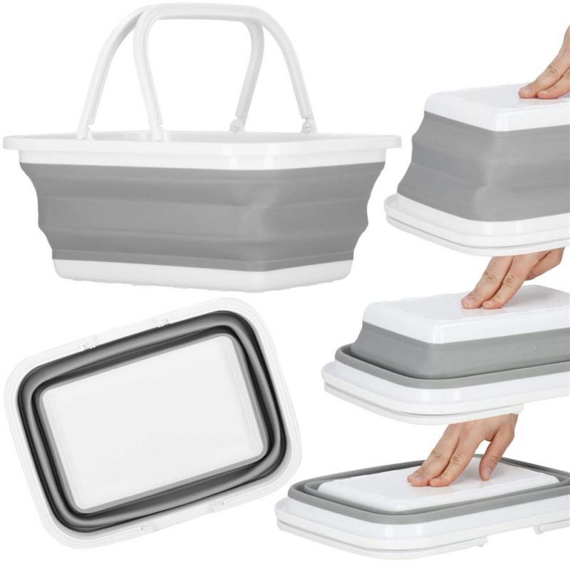 Fabricat din materiale solide si durabile Materialul din silicon si designul bine gandit au permis o structura asemanatoare acordeonului. Vasul este echipat cu un sistem rapid de pliere si desfasurare care va va lua doar cateva secunde. Dupa pliere, ocupa putin spatiu, asa ca il poti depozita aproape oriunde, il poti atarna pe perete, il poti ascunde intr-un sertar si il poti lua cu usurinta cu tine cand calatoresti.Un recipient de depozitare din silicon sub forma unui cos este un produs discret, dar extrem de universal. Datorita proprietatilor materialelor si utilizarii versatile, se remarca pe piata si ofera numeroase aplicatii posibile, cu dimensiuni optime si posibilitatea de depozitare usoara dupa pliere. Galeata este fabricata din plastic rezistent si un strat gros de silicon, asa ca va va servi foarte mult timp.