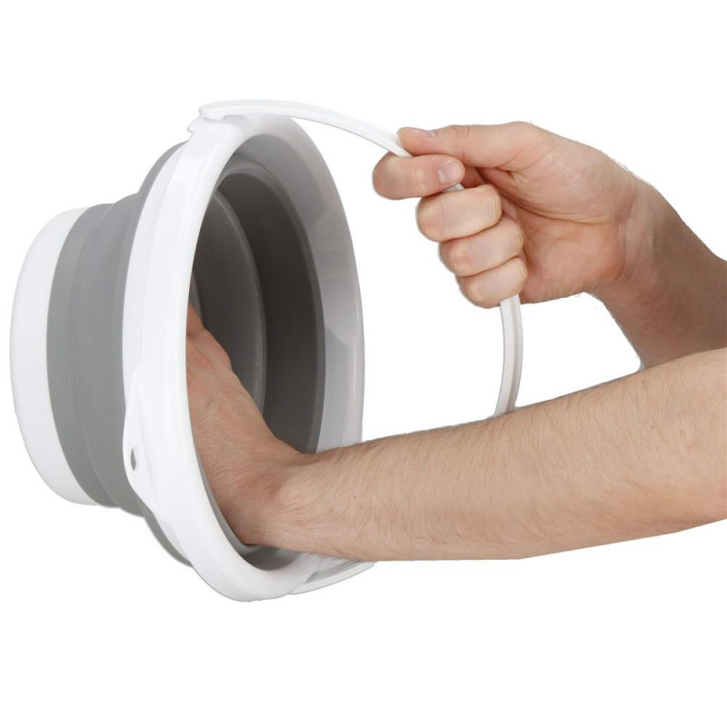 Maner confortabil de transport care se potriveste bine in mana Materialul siliconic si designul bine gandit ne-au permis sa realizam o structura asemanatoare acordeonului. Galeata este echipata cu un sistem rapid de pliere si desfasurare care va va lua doar cateva secunde. Cand este pliat, ocupa putin spatiu, astfel incat il puteti depozita aproape oriunde. Galeata in sine este un produs extrem de universal, dar produsul nostru se remarca pe piata datorita proprietatilor sale excelente. Galeata este fabricata din plastic rezistent si un strat gros de silicon, asa ca va va servi foarte mult timp. Dar asta nu este tot, le-am dotat cu detalii demne de remarcat precum:
