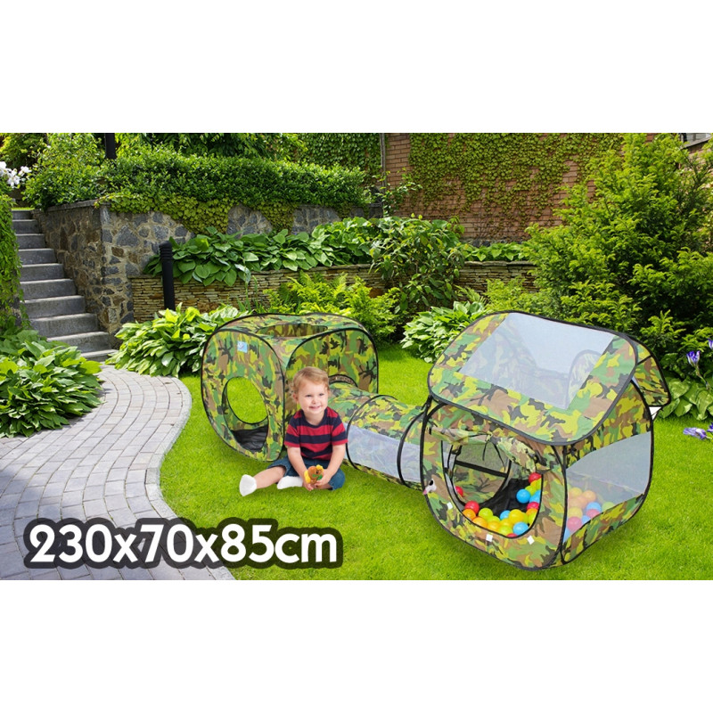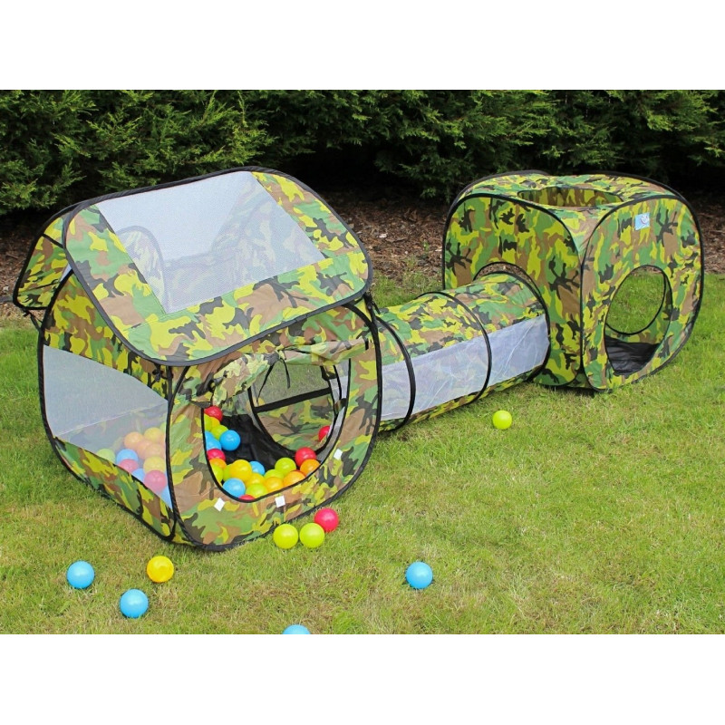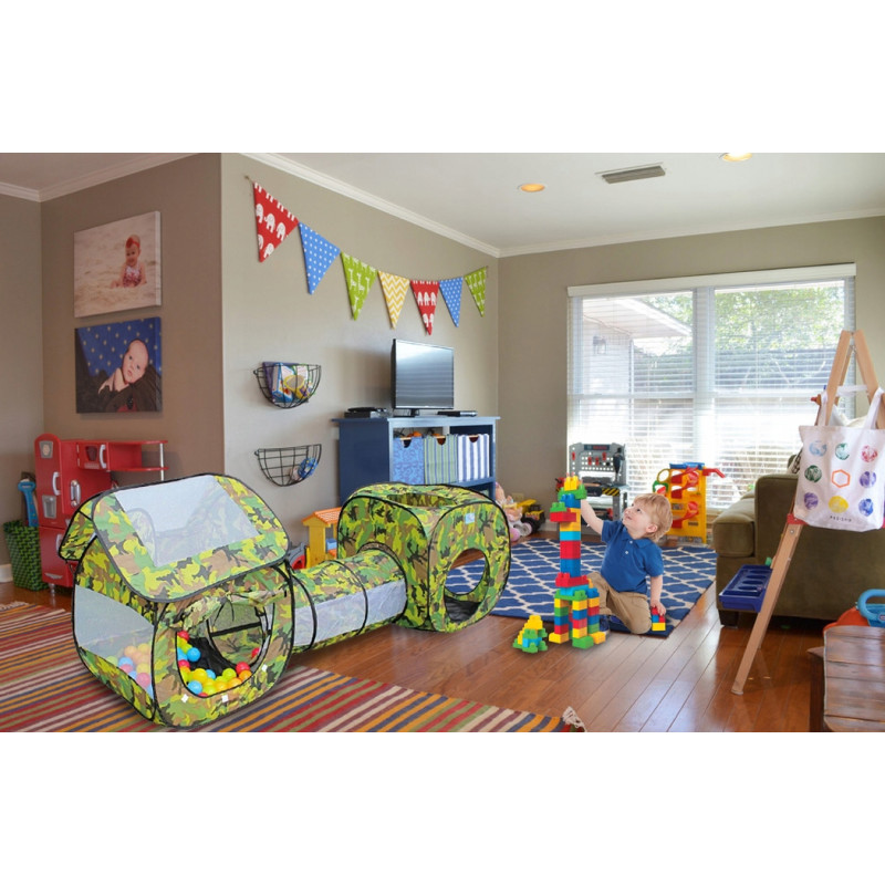 Jucarie nepotrivita pentru copii cu varsta sub 3 ani. Cort autopliabil 3 in 1 pentru copii - este format din 2 camere conectate printr-un tunel. Cortul este realizat in mare parte din plasa, ceea ce asigura o iluminare adecvata in interior si faciliteaza supravegherea jocului de catre ingrijitor. Cortul este usor de asamblat datorita cadrului sau autopliabil! Atunci cand este pliat, cortul intra intr-o punga, ceea ce il face usor de transportat sau de depozitat.