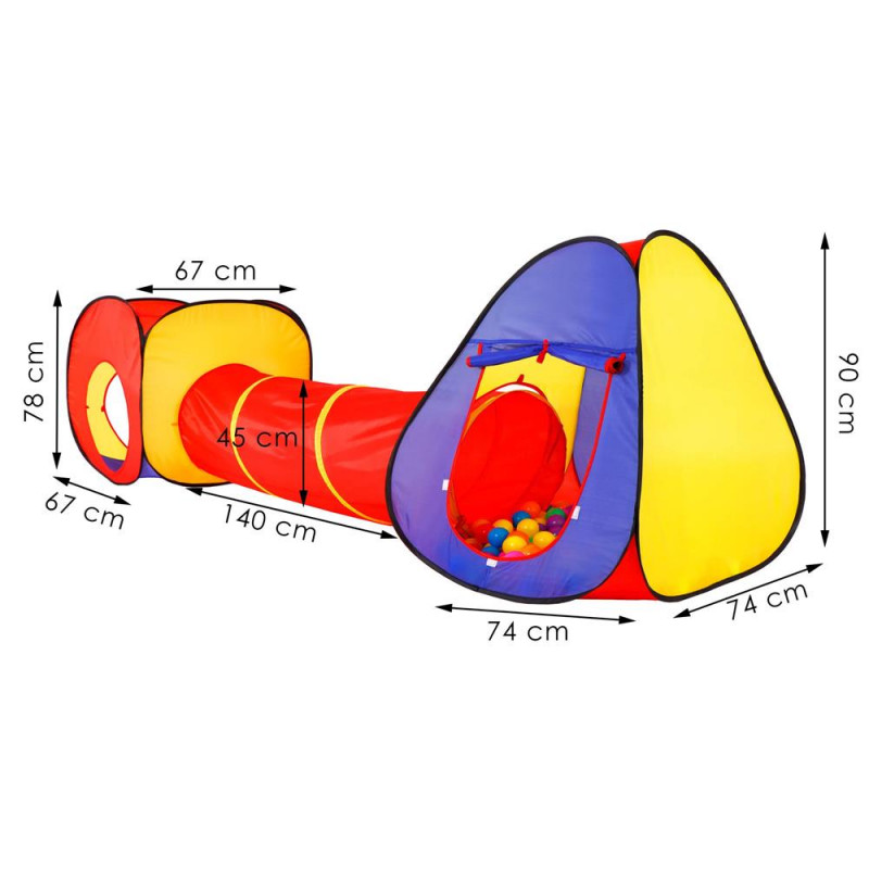 Grosimea ramei: aproximativ 3 mm Fie intr-o camera calda si confortabila, pe o terasa linistita sau in gradina - cortul nostru pentru copii isi va gasi locul oriunde. Proiectat cu gandul la mai multi copii, cortul cu tunel si piscina uscata permite o joaca fara griji pentru mai multi mici exploratori in acelasi timp. Tunelul multicolor este o modalitate excelenta de a adauga varietate la joaca si de a introduce un element de interactivitate care va incanta orice copil Toate lucrurile bune nu trebuie sa necesite mult efort. Cortul nostru este rapid si usor de asamblat. Dezvoltat cu gandul la siguranta si confort, cortul are o podea robusta si o constructie independenta. Cand ati terminat de jucat, se pliaza usor si se depoziteaza intr-o geanta de transport practica cu manere. Joaca-te, viseaza, exploreaza - toate intr-un cort tunel care este pregatit pentru aventurile copilului tau. Pregatiti-va pentru momente de neuitat, pline de bucurie si zambete.