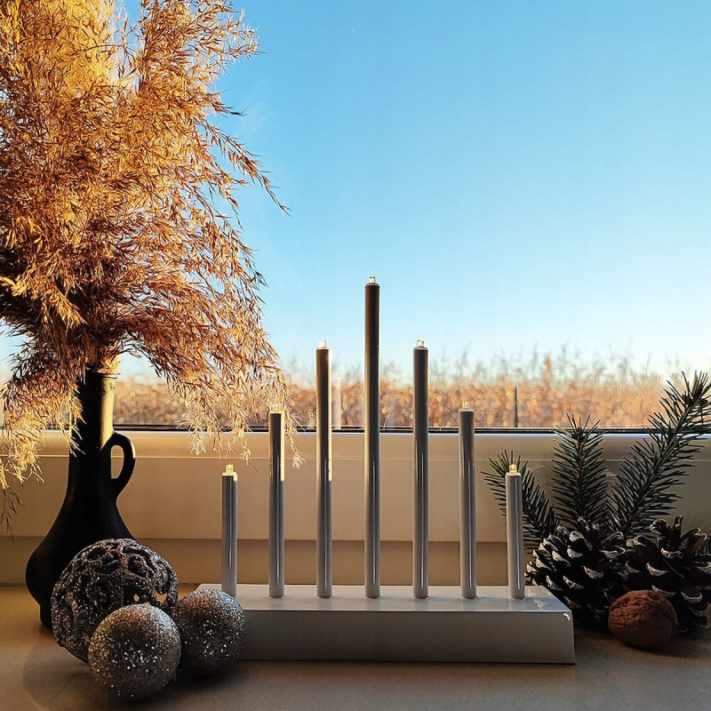 Sfesnicul de Advent simbolizeaza anticiparea vesela a Craciunului si, prin urmare, va fi accesoriul perfect pentru casa ta. Traditia spune ca trebuie sa fie in flacari pana in Ajunul Craciunului, si mai precis pana la miezul noptii intre Ajunul Craciunului si Craciun. Il poti aseza ca decor pentru o masa, semineu sau pervaz, ceea ce te va face sa te bucuri si mai mult de aura de sarbatore a Craciunului.Suportul pentru lumanari functioneaza cu baterii, asa ca il puteti pune oriunde doriti, fara sa va faceti griji daca exista o priza in apropiere. In plus, lampile cu LED-uri sunt foarte eficiente din punct de vedere energetic si sigure pentru copii in comparatie cu suporturile traditionale pentru lumanari de ceara.Mai mult, are o baza solida, datorita careia va fi stabil in locul ales. Totul este realizat intr-un stil foarte modern. Datorita acestui design uimitor, decorul se va potrivi perfect cu orice design interior.