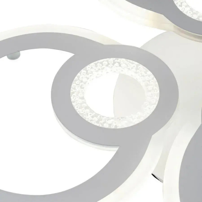 Vezi video montaj Aceasta lustra LED cu telecomanda KADE, de 72W si culoare alba, aduce un design modern si o iluminare versatila in orice incapere. Cele 4 cercuri luminoase interconectate creeaza un aspect elegant si contemporan. Caracteristici principale: Putere: 72W, asigurand o iluminare eficienta si luminoasa. Design modern: Patru cercuri albe interconectate pentru un aspect stilat. Tip de lumina reglabil: Poti alege intre lumina rece, calda sau neutra, adaptand atmosfera preferintelor tale. Dimabila: Intensitatea luminii este reglabila cu ajutorul telecomenzii incluse, permitand crearea ambientului dorit. Control prin telecomanda: Ajusteaza temperatura culorii si intensitatea luminii de la distanta. Lustra poate fi controlata si prin intermediul intrerupatorului clasic (schimbarea modului de iluminare prin apasari succesive). Flux luminos optim: Ofera o cantitate adecvata de lumina pentru a ilumina eficient spatiul. Tehnologie LED: Eficienta energetica ridicata si durata de viata indelungata. Materiale de calitate: Constructie solida pentru o utilizare de lunga durata. Instalare facila: Vine cu instructiuni clare pentru o montare simpla. Aceasta lustra LED KADE este o alegere excelenta pentru cei care cauta un corp de iluminat modern, functional si cu posibilitatea de a personaliza iluminatul in functie de necesitati.