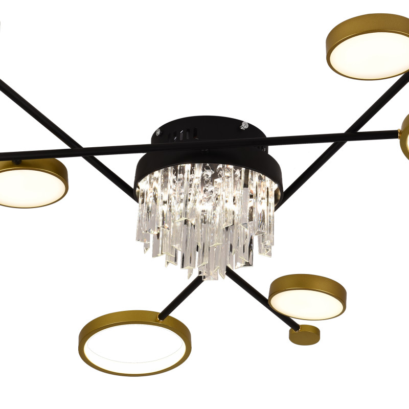 Eleganta Moderna si Control Inteligent: Lustra LED cu Telecomanda GUIDA Imbraca-ti spatiul cu stil si inovatie folosind lustra LED VELO. Designul sau modern imbina armonios contrastele dintre finisajul auriu si elementele negre, creand un aspect sofisticat si atragator, perfect pentru interioarele contemporane. Cu o putere de 38W, aceasta lustra LED ofera o iluminare eficienta si placuta. Datorita telecomenzii incluse, ai control total asupra luminii, putand ajusta intensitatea luminoasa pentru a crea atmosfera perfecta in orice moment. Desi descrierea nu mentioneaza temperatura culorii, majoritatea lustrelor LED cu telecomanda ofera posibilitatea de a schimba intre lumina calda, rece si neutra. Daca aceasta functie este disponibila, ar adauga un plus de versatilitate. Caracteristici Cheie: Design Modern si Elegant: Combinatie contrastanta de auriu si negru. Putere Eficienta: 38W pentru o iluminare optima. Telecomanda Inclusa: Control facil al intensitatii luminoase. Posibila Temperatura Culoare Variabila: (Verifica specificatiile produsului) Lumina Calda, Rece si Neutra. Materiale de Calitate: Metal durabil cu finisaje elegante. Stil Contemporan: Se integreaza perfect in interioarele moderne si minimaliste. Beneficii: Control Facil al Luminii: Ajusteaza intensitatea fara a te deplasa. Aspect Estetic Placut: Combinatia de culori adauga un plus de stil si modernitate. Eficienta Energetica LED: Consum redus de energie si durata de viata lunga. Usor de Integrat: Designul modern se potriveste in diverse amenajari interioare. Creeaza Ambianta Dorita: Ajusteaza lumina pentru diferite activitati si momente. Lustra LED cu telecomanda GUIDA este alegerea ideala pentru a adauga un plus de stil, confort si control inteligent in casa ta. Bucura-te de iluminarea moderna si de flexibilitatea oferita de telecomanda!