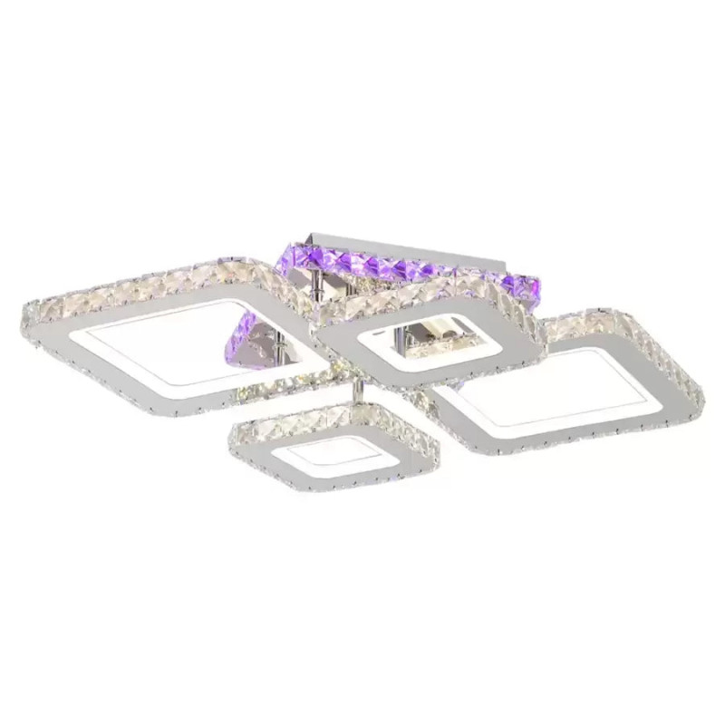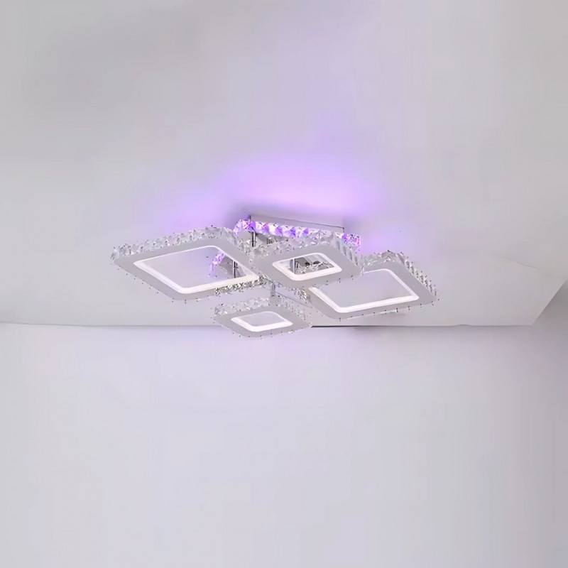 Lustra LED cu telecomanda NOVA RHOMBA RGB, de 60W, cu un design format din 4 patrate, ofera o iluminare moderna si personalizabila, avand un finisaj argintiu elegant. Caracteristici principale: Putere: 60W Design: Patru patrate interconectate, formand un ansamblu vizual atractiv si contemporan. Tip de lumina: RGB (Rosu, Verde, Albastru) + lumina Rece/Calda/Neutra. Aceasta permite alegerea dintr-o gama variata de culori, precum si diferite nuante de alb. Dimmabila: Da, intensitatea luminii poate fi ajustata cu ajutorul telecomenzii. Control: Telecomanda inclusa, pentru controlul de la distanta al culorilor RGB, temperaturii de culoare a luminii albe si intensitatii.