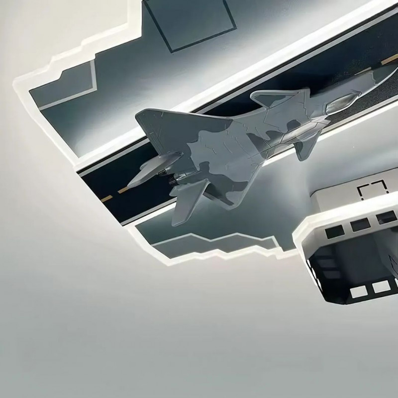 Lustra LED FIGHTER este un corp de iluminat cu un design modern si tematica de avion, perfecta pentru camera copiilor. Functioneaza la o tensiune de 220-230V, are o putere totala de 128W si se monteaza pe tavan, fiind prevazuta cu banda LED. Structura este realizata din acril si metal, finisaj argintiu, cu o inaltime de 22 cm, lungime de 75 cm si latime de 37 cm. Ofera un flux luminos de 10.240 lm si poate emite lumina rece, calda sau neutra, compatibila cu intrerupator clasic. Este recomandata pentru camera copiilor sau dormitor, avand o autonomie de 25.000h, protectie IP20 si este destinata utilizarii la interior.