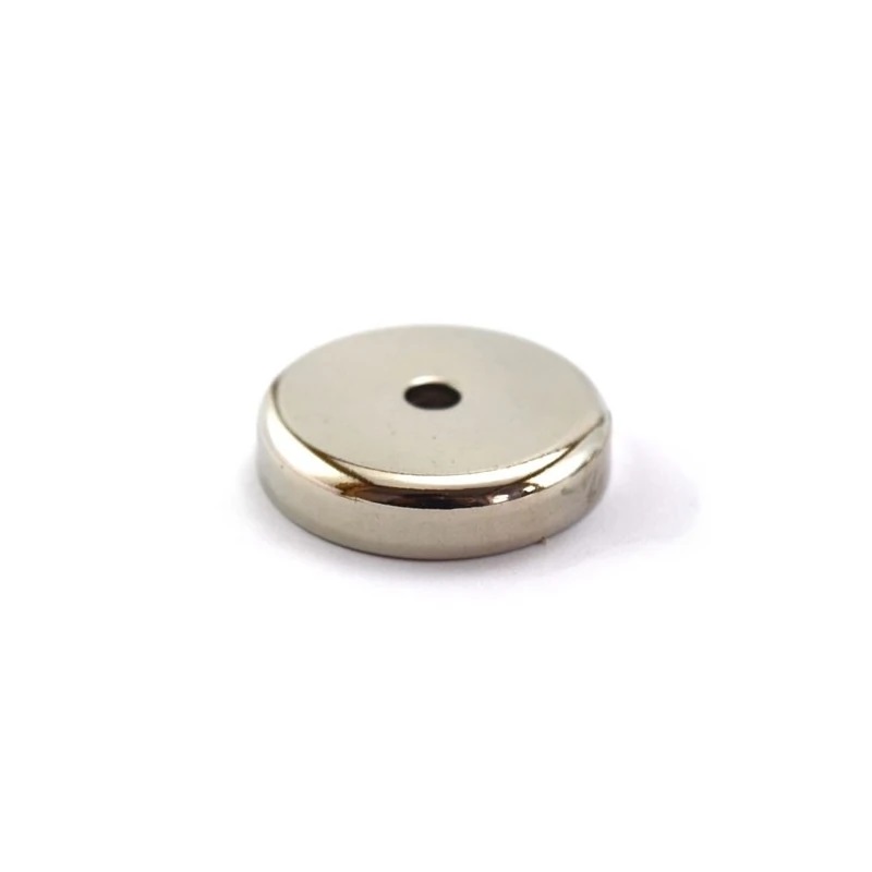 Magnet neodim puternic, formă oală, N35, placat cu nichel cu diametrul 42 mm și forță aproximativ 55 kg la contact. Magnet oală, prevăzut cu gaură pe mijloc potrivită pentru fixare cu șuruburi cu cap înecat.