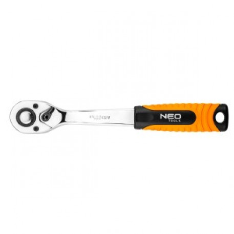 Clichet NEO, cu corpul din otel crom-vanadiu, realizat in conformitate cu norma DIN 3122. Mecanismul de clichet din 72 de dinti este fabricat din otel crom-molibden extrem de rezistent, prelungind durata de viata a instrumentului si oferind o munca precisa. Manerul ergonomic realizat din cele doua materiale imbunatateste confortul muncii. Calitatea instrumentului o confirma certificatul TÜV si garantia de 25 de ani a producatorului. Marca NEO indeplineste asteptarile profesionistilor.