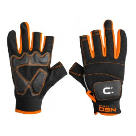 Manusile de lucru magnetice fara degete, marimea 10" Neo (Ref. GD014) au un magnet pe spate, astfel incat cei care lucreaza in domeniul bricolajului pot tine la indemana suruburi, piulite si alte piese mici in timp ce lucreaza. Cele trei varfuri de degete expuse permit o munca precisa. Varfurile degetelor si incheieturile mainilor sunt protejate de un strat de cauciuc care asigura absorbtia socurilor si reduce abraziunea. Velcro pe incheietura mainii permite ajustarea circumferintei. Manusile sunt conforme cu standardul EN 388. Disponibile in marimea 10".