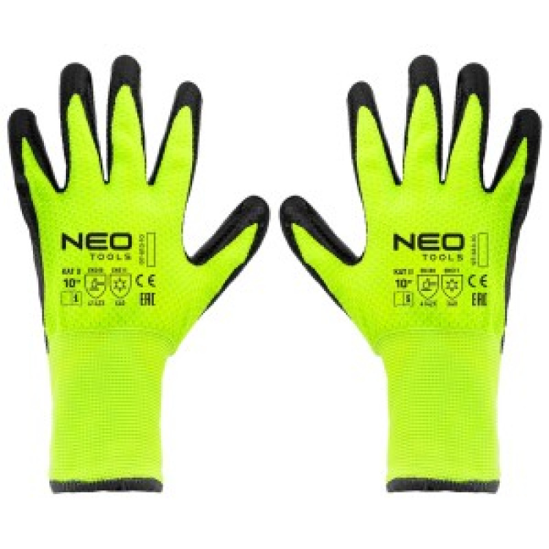 Manusile de lucru izolate NEO, marimea 10, nylon acoperit cu latex, 4142X 97-613-10, sunt fabricate din nylon acoperit cu latex. Au o rezistenta ridicata la abraziune (0 pana la 4) 4, rezistenta la taieturi cu obiecte ascutite (0 pana la 5) 1, rezistenta la rupere (0 pana la 4) 4 si rezistenta la perforare (0 pana la 4) 2. Se disting, de asemenea, prin rezistenta la taiere in conformitate cu EN ISO 13997 X. Manusile se potrivesc bine in mana. Acestea pot fi utilizate pentru toate tipurile de transport, manipulare, depozitare, lucrari de asamblare, productie de piese mici, bricolaj, automobile si gradinarit. Acestea protejeaza mainile de frig, murdarie, zgarieturi, amprente si conditii de lucru daunatoare. Cu un design adecvat - previne alunecarea uneltelor din maini. Marcajul CE pentru conformitatea cu EN 388, 22242X si EN511, care ofera protectie impotriva frigului, este o garantie de siguranta care dovedeste ca produsul marca NEO indeplineste toate cerintele UE.