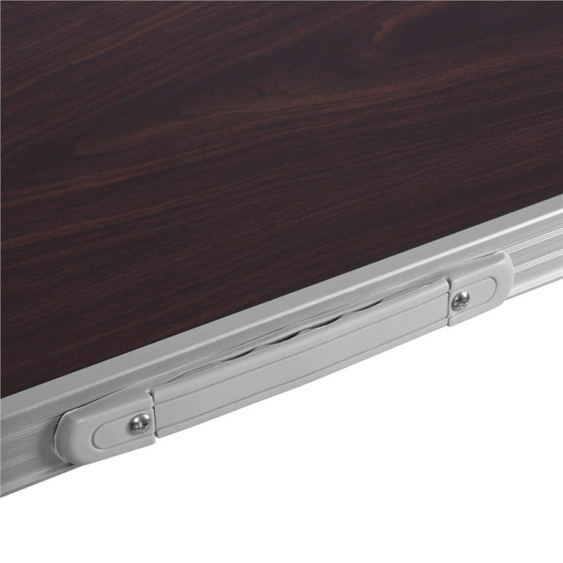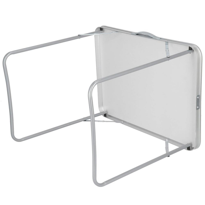 Idee perfecta de cadou pentru toata lumea Materialele folosite pentru masa de turism sunt combinatia perfecta pentru a garanta o durata de viata lunga a produsului. MDF este un material de inalta densitate, ceea ce il face rezistent la deformare si deteriorare. Aluminiul, pe de alta parte, este un material usor, dar puternic, care protejeaza masa de coroziune si rugina. Designul special garanteaza o utilizare sigura a mesei. Un avantaj evident al mesei de excursie este forma sa de valiza pliabila, ceea ce o face extrem de practica si usor de depozitat si transportat. Plierea si desfasurarea mesei dureaza doar cateva momente si nu necesita unelte speciale, ceea ce inseamna ca poate fi pregatita rapid si usor pentru calatorie. Atunci cand este pliata, masa ocupa foarte putin spatiu, astfel incat poate fi depozitata in portbagajul masinii.