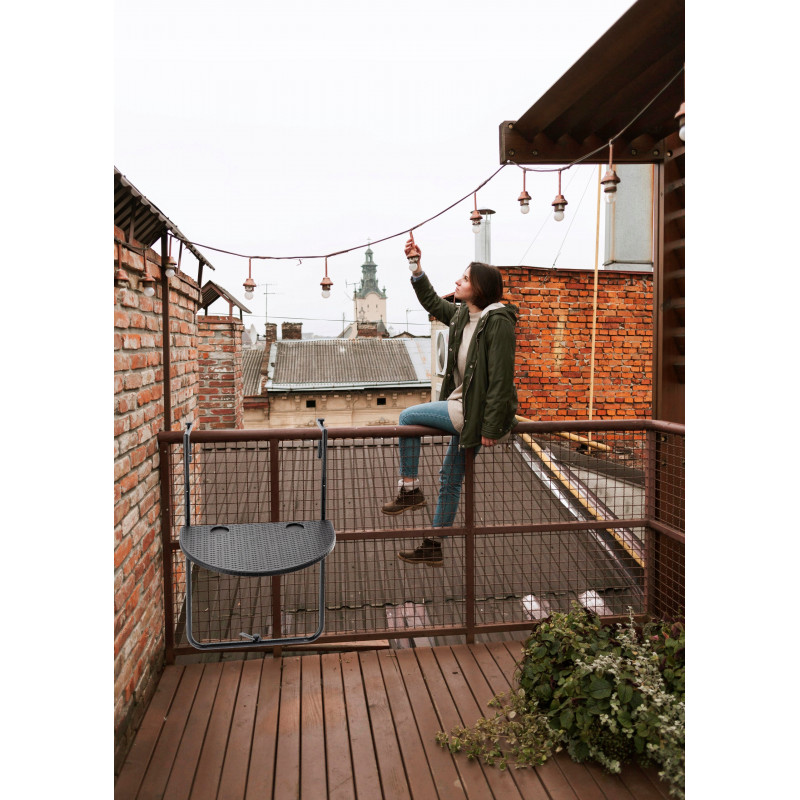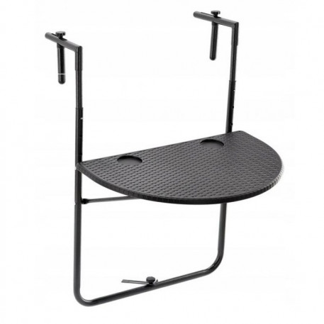 Culoare: negru, imita ratan Cautati o solutie functionala pentru un balcon mic? O masa de balcon suspendata si pliabila este raspunsul la nevoile dumneavoastra. Aceasta masa practica este conceputa pentru a profita la maximum de spatiul limitat. Nu numai ca economiseste spatiu, dar ofera si eleganta mediului inconjurator.Masa este special conceputa pentru a fi atarnata de o balustrada sau de balcon fara a ocupa spatiu valoros pe podea. Asamblarea este extrem de simpla, iar fixarea reglabila permite ca masa sa fie atasata la rame de balustrada cu latimea cuprinsa intre 6,5 si 16 cm.Masa are o grosime a blatului de 1,7 cm, ceea ce asigura stabilitate in timpul utilizarii. Culoarea maro, care imita lemnul natural, este realizata dintr-un material rezistent si ii confera un aspect elegant care se potriveste perfect cu imprejurimile.Culoarea, imitand caldura lemnului, adauga farmec mediului inconjurator, in timp ce simplitatea structurii asigura instalarea usoara si utilizarea practica a suprafetei balconului. Masa este usor de curatat - doar stergeti-o cu o carpa umeda pentru a-si pastra farmecul.