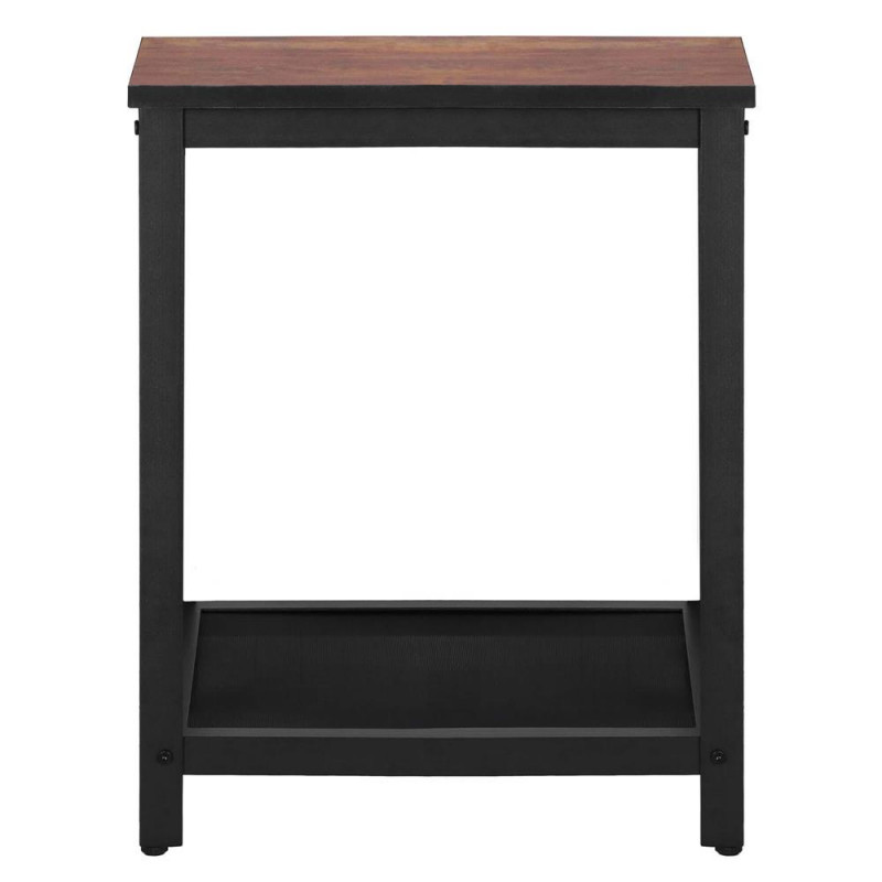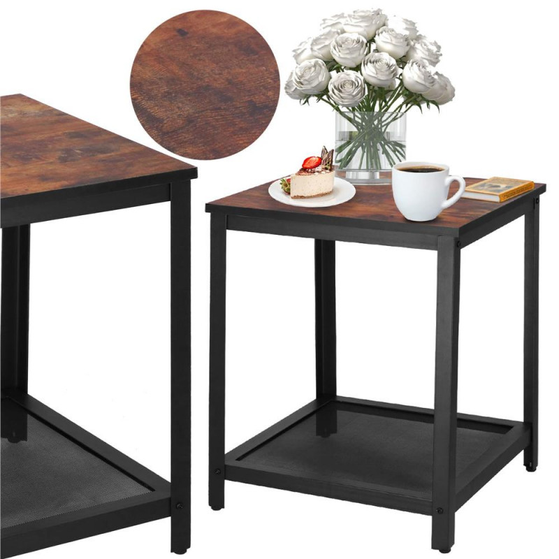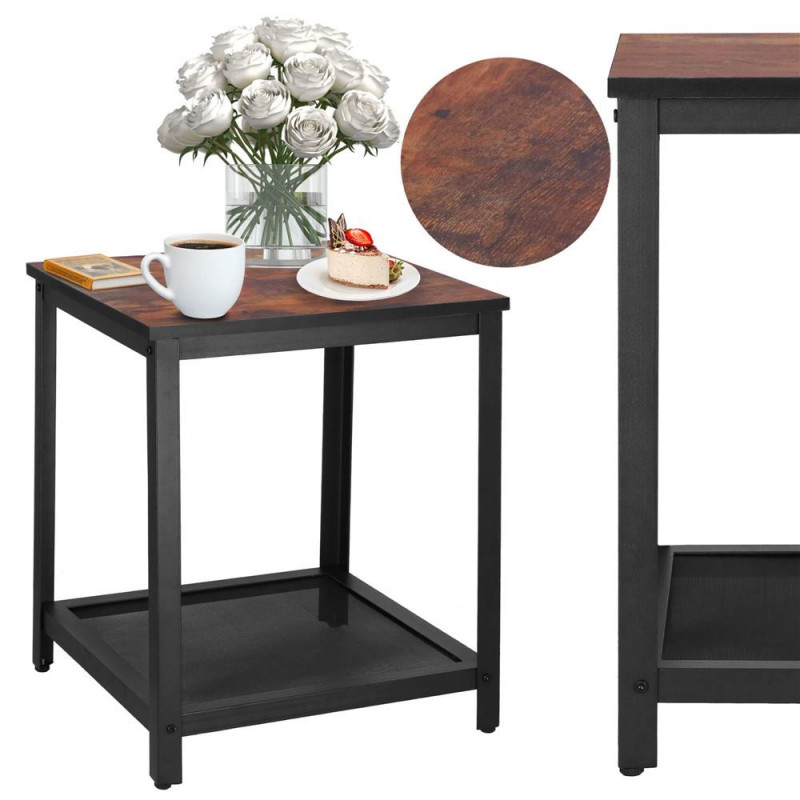 Distanta de la margine la margine: 44 cm Combinand rama neagra cu blatul de masa maro rustic, amestecul elegant de stiluri face ca aceasta masuta laterala sa iasa in evidenta, dand camerei dvs. o nota individuala. Fabricata dintr-un cadru din otel rezistent si placi laminate de calitate superioara, aceasta masuta laterala ofera o capacitate de incarcare ridicata.Datorita