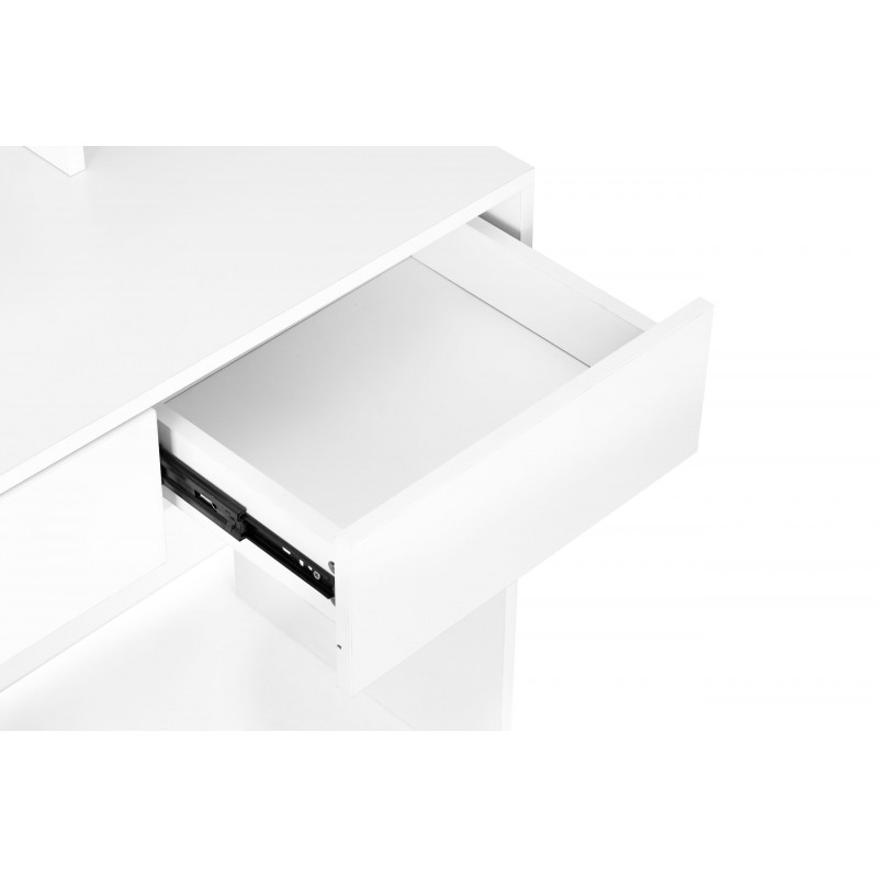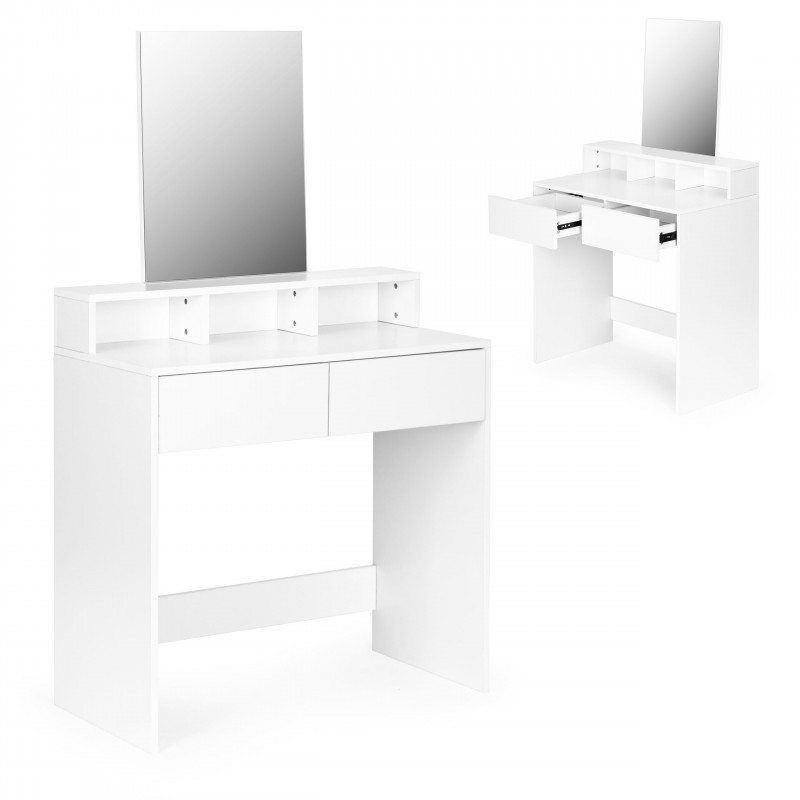 Scurta descriere: Aceasta toaleta de machiaj combina designul modern cu functionalitatea, oferind un spatiu elegant si practic pentru rutina zilnica. Cu un blat generos, doua sertare incapatoare si o oglinda mare, este ideala pentru organizarea produselor cosmetice si a accesoriilor. Constructia robusta si finisajele atent realizate o recomanda pentru orice dormitor sau dressing.