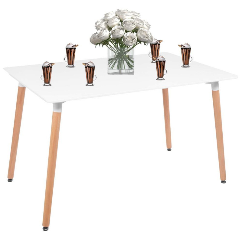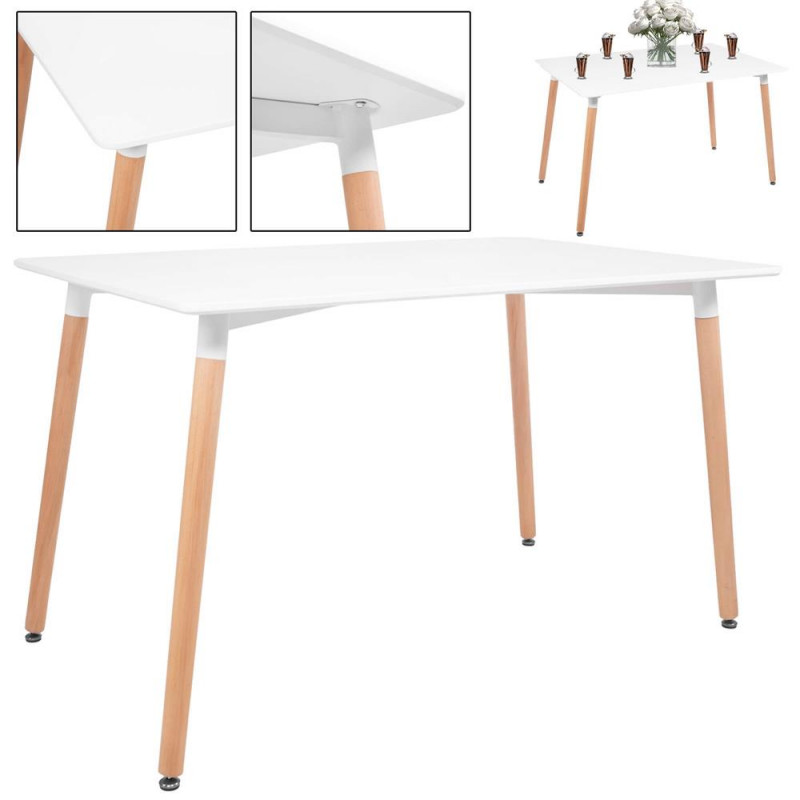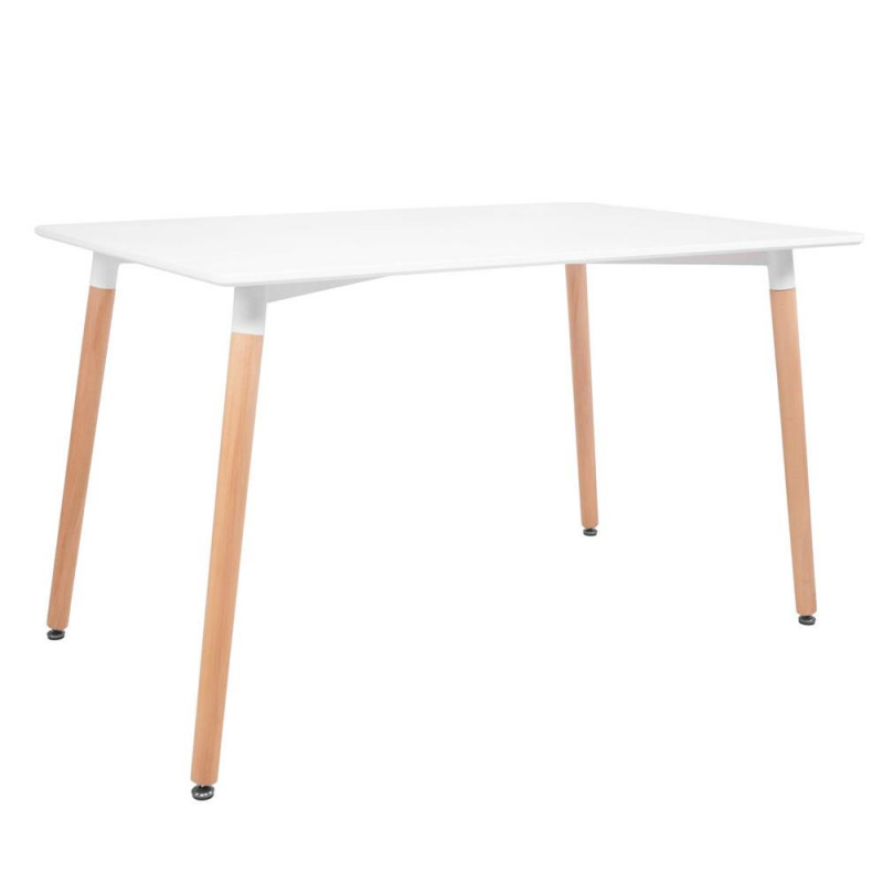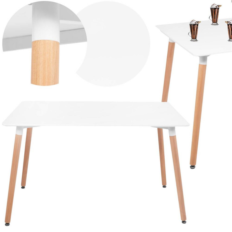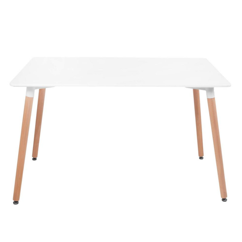 Dimensiuni blat: 120x80 cm O masa dreptunghiulara, alba, este o completare eleganta pentru orice camera. Produsul va conferi un caracter modern oricarei bucatarii, dormitorului, sufrageriei si altor incaperi. Originalitatea sa consta in emblematica charkatra scandinava, adica o combinatie de alb, lemn si negru, interconectare subtila chiar sub blat. O masuta de cafea in stil scandinav nu este doar un element estetic, ci si un element practic al designului interior. Rezistenta si durabilitatea sa sunt garantate de materiale de inalta calitate. Stabilitate suplimentara va fi asigurata de picioarele solid atasate de blatul mesei. Datorita designului sau simplu si elegant, se potriveste perfect in interioarele moderne si minimaliste.
