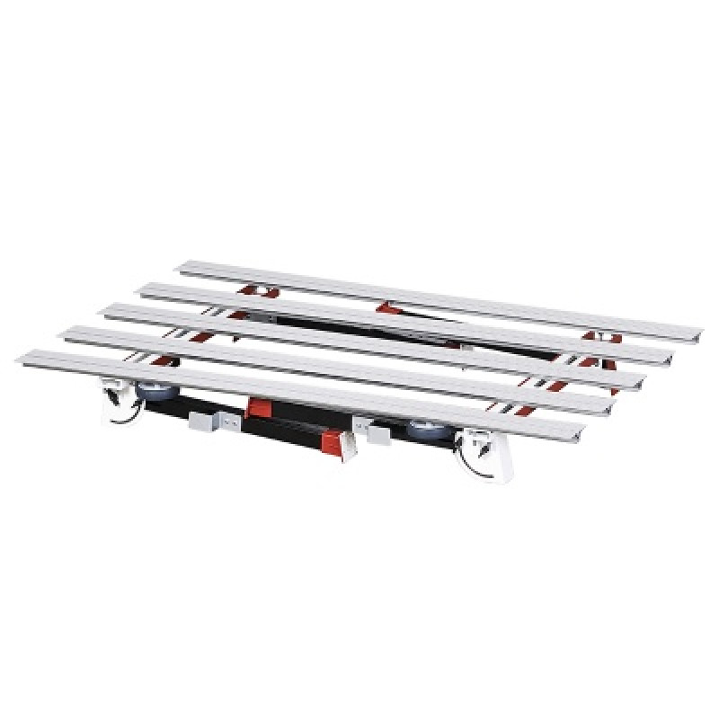 - profile versatile din aluminiu: Profilele din aluminiu pot fi ușor ajustate și apropiate pentru a se adapta la diferite dimensiuni de plăci și nevoi de tăiere. Designul lor mobil permite tăieturi sigure cu polizorul unghiular și discul diamantat fără a deteriora blatul de lucru. Cilindrii opționali de susținere a plăcilor pot crea un spațiu pentru a proteja suplimentar masa.