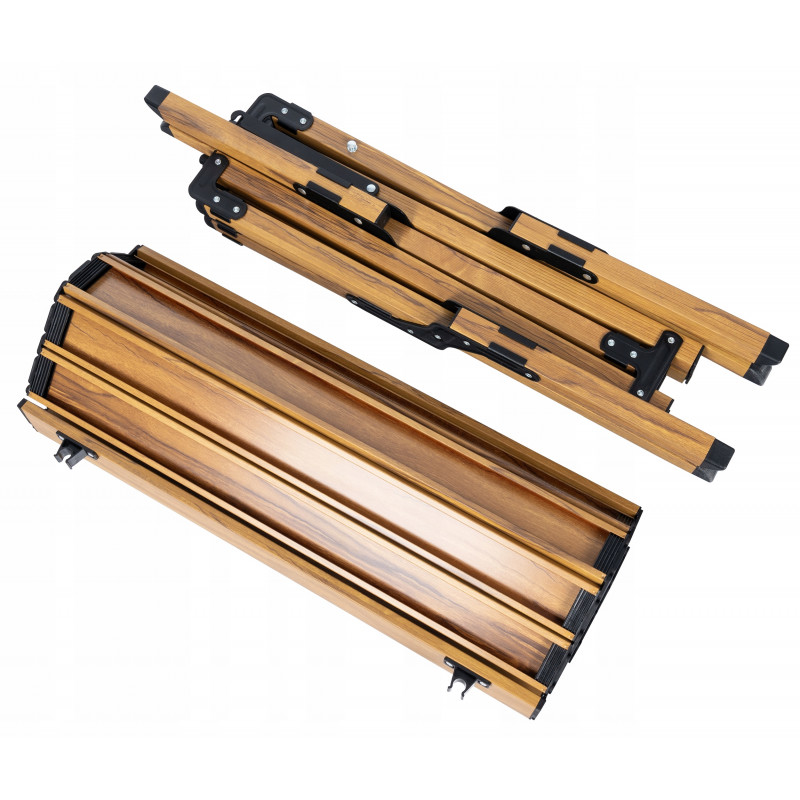 Material: Cadru otel / elemente de plastic O vacanta cu cortul sau un picnic in aer liber devin si mai placute cu aceasta masa practica.Indispensabila pentru mesele comune, pregatirea mesei sau divertismentul de seara, aceasta masa pliabila va oferi confort si functionalitate in orice situatie. Stabilitatea si siguranta sunt garantate datorita elementelor speciale de pe picioare care impiedica plierea accidentala a mesei. In acest fel, nu trebuie sa va faceti griji ca o usoara miscare va face ca masa sa se plieze neasteptat. Cu o lungime de 120 cm si posibilitatea de a plia picioarele, aceasta masa poate fi usor transformata intr-o valiza la indemana. Portabilitatea este convenabila, iar dimensiunile compacte permit depozitarea fara efort intr-un portbagaj. Fabricata din aluminiu si plastic, asigura stabilitate chiar si in timpul utilizarii intensive. Combinand materialele de inalta calitate cu designul functional, aceasta masa devine o parte indispensabila a excursiilor pentru toata lumea.