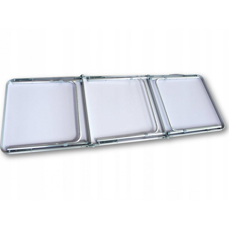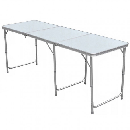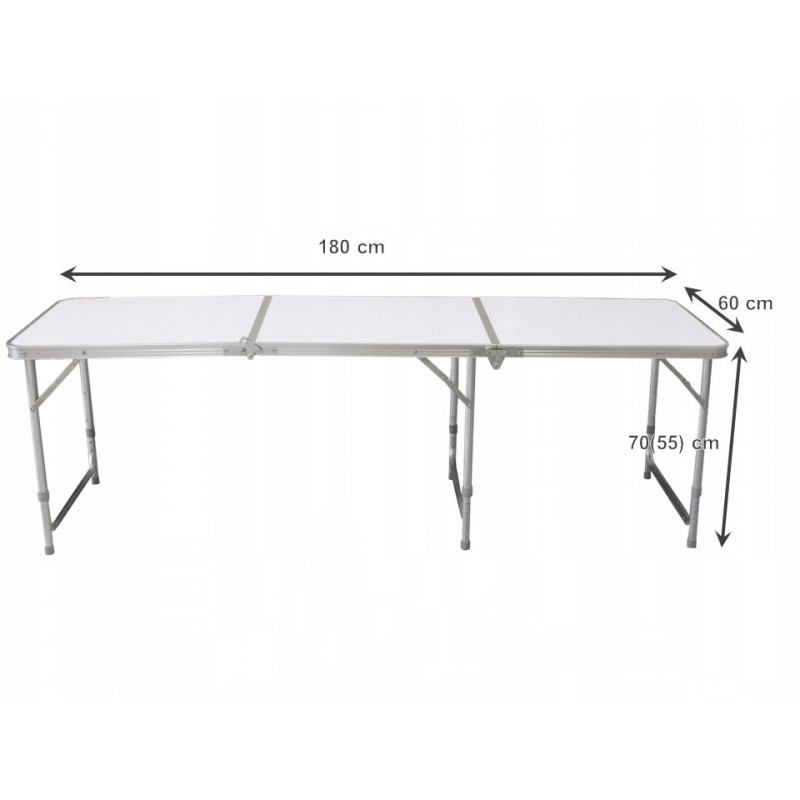 Material: aluminiu + MDF laminat Masa pliabila este elementul perfect pentru orice eveniment, banchet sau excursie turistica de familie. Blatul mesei este gros, masiv si are margini rotunjite. Fabricat din materiale de inalta calitate (aluminiu + placa laminata), este exceptional de durabil, rezistent la toate conditiile meteorologice si datorita lungimii sale de 180 cm! Poate gazdui o familie numeroasa sau oaspeti. Datorita inaltimii reglabile de la 55 cm la 70 cm, putem regla confortul utilizarii mesei. Datorita posibilitatii de a o plia sub forma de valiza, va puteti deplasa convenabil cu ea literalmente oriunde. In plus, are un maner care usureaza transportul.