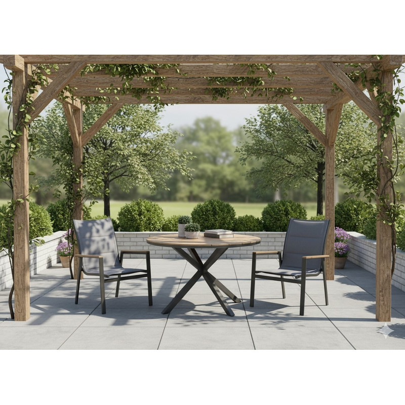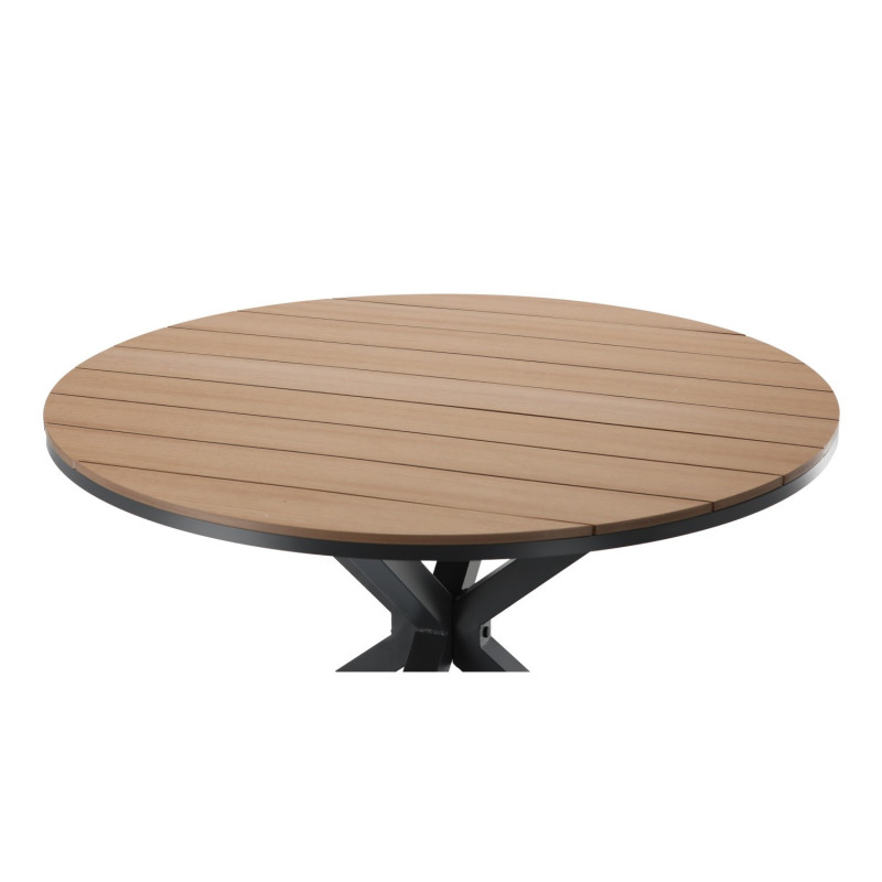 Scurta descriere Masa rotunda pentru gradina imbina designul modern cu rezistenta ridicata la conditii meteo. Cadrul din aluminiu usor si durabil, impreuna cu blatul din polywood cu aspect de lemn natural, ofera un echilibru perfect intre estetica si functionalitate. Ideala pentru terasa sau gradina, aceasta masa creeaza un spatiu confortabil pentru momente relaxante in aer liber.