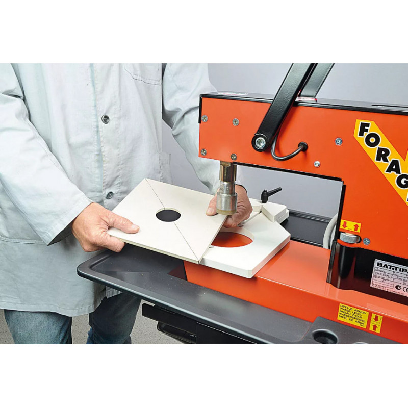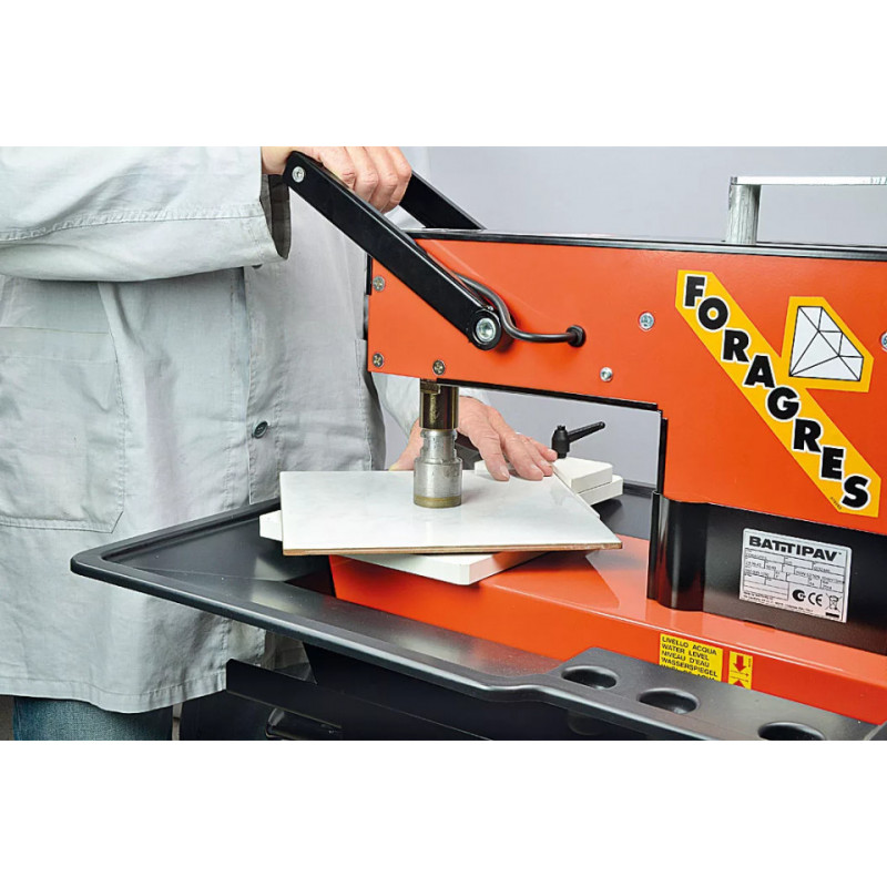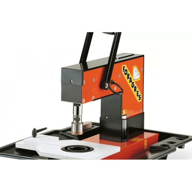 FORAGRES este mașina profesională de top pentru găurirea perfectă în plăci ceramice și monocottura, klinker, gres porțelan, marmură, gresie vitrificată, pietre dure și sticlă. Datorită sensibilității sale, este posibil să găuriți găuri de la 10 mm până la 150 mm cu un grad excelent de finisare.